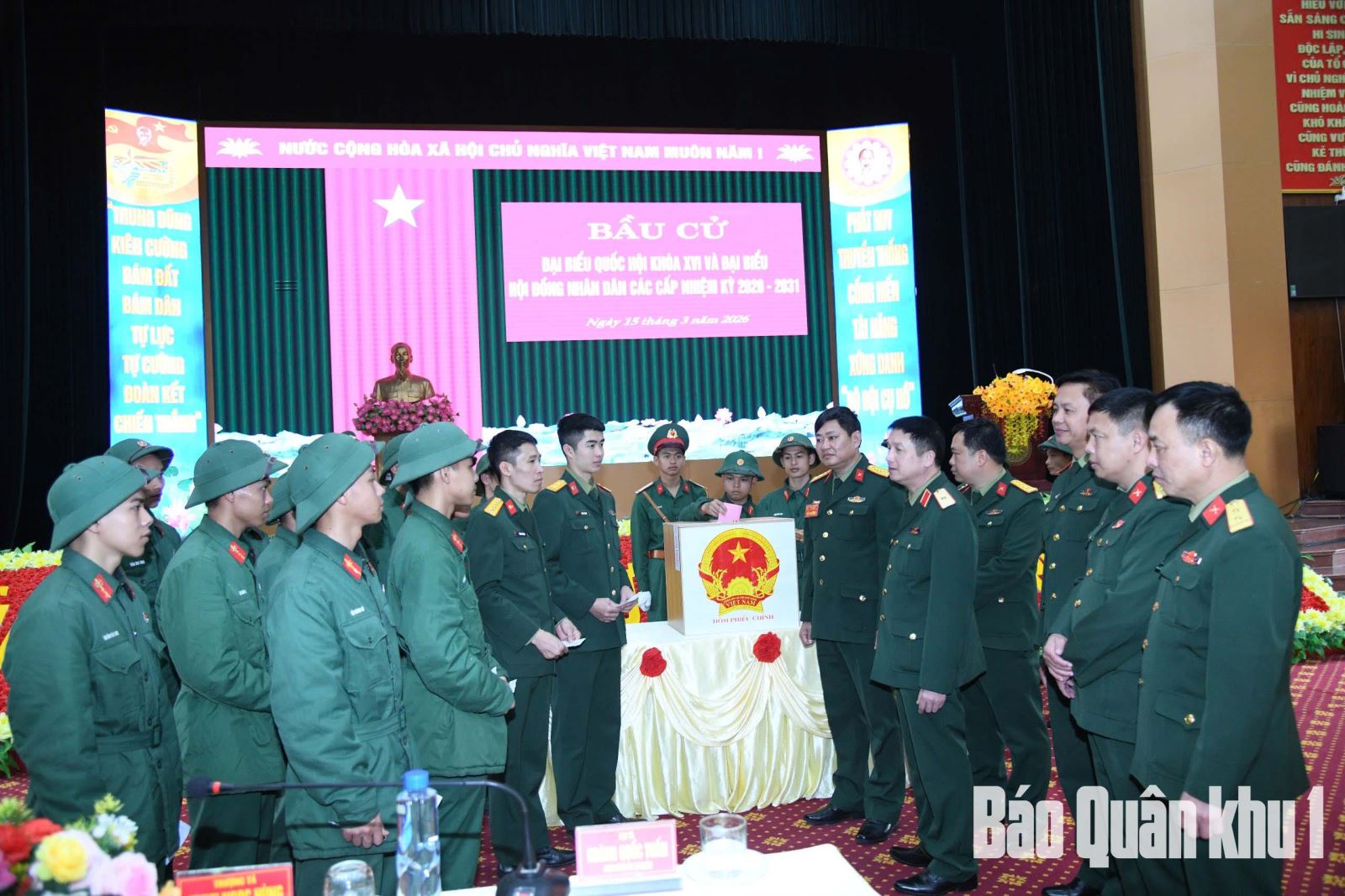 Ngày 15-3-2026, hàng vạn cử tri thuộc các cơ quan, đơn vị lực lượng vũ trang (LLVT) Quân khu 1 nô nức tham gia bỏ phiếu bầu đại biểu Quốc hội khóa XVI và đại biểu Hội đồng nhân dân các cấp nhiệm kỳ 2026-2031. Cuộc bầu cử diễn ra trong không khí dân chủ, trang nghiêm, đúng pháp luật, thể hiện rõ tinh thần trách nhiệm, ý thức công dân và niềm tin của cán bộ, chiến sĩ LLVT Quân khu 1 đối với Đảng, Nhà nước trong giai đoạn phát triển mới của đất nước.