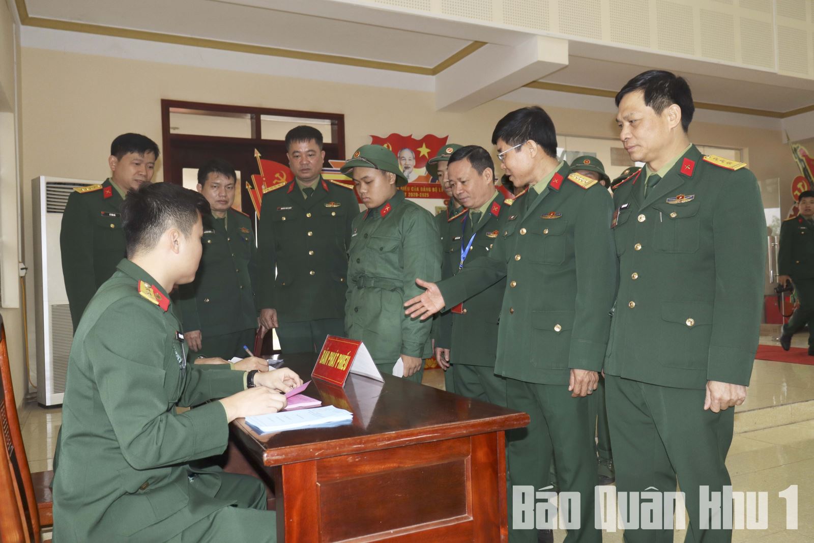 Ngay từ sáng sớm, tại khu vực bỏ phiếu số 10, cán bộ, chiến sĩ đã có mặt đông đủ, thực hiện các bước bầu cử theo đúng quy định. Khu vực bỏ phiếu được trang trí trang nghiêm với cờ, hoa, pa-nô, khẩu hiệu nổi bật; danh sách cử tri và tiểu sử tóm tắt của các ứng cử viên được niêm yết công khai để cử tri nghiên cứu trước khi thực hiện quyền công dân.