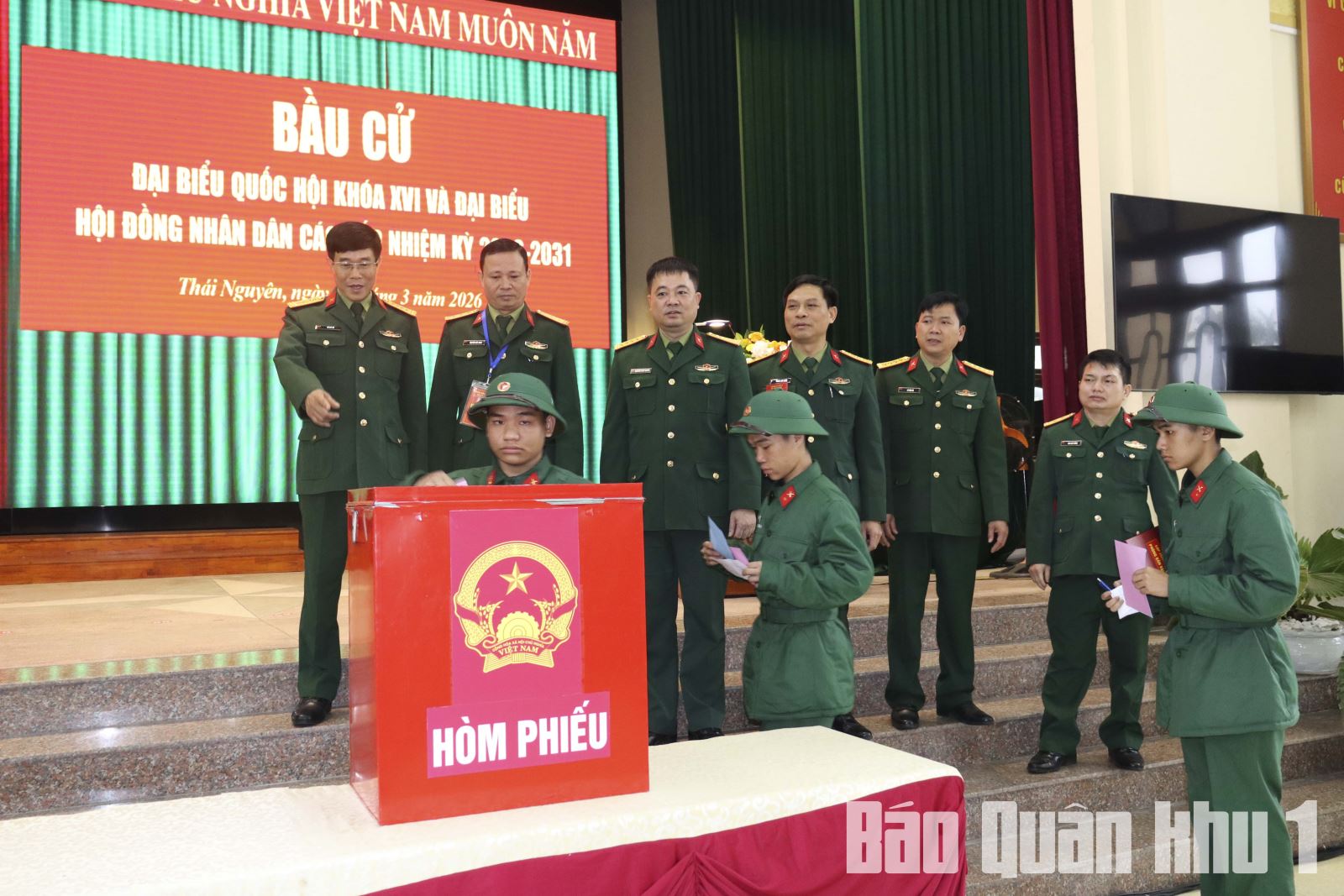 Bầu cử tại Khu vực bỏ phiếu số 10, xã Đồng Hỷ, tỉnh Thái Nguyên có Trung tướng La Công Phương, Ủy viên Trung ương Đảng, Bí thư Đảng ủy, Chính ủy Quân khu; Trung tướng Trương Mạnh Dũng, Tư lệnh Quân khu; các đồng chí trong Đảng ủy, Bộ tư lệnh Quân khu; đại diện lãnh đạo địa phương; cử tri khối cơ quan Quân khu và Tiểu đoàn 1, Lữ đoàn Thông tin 601.