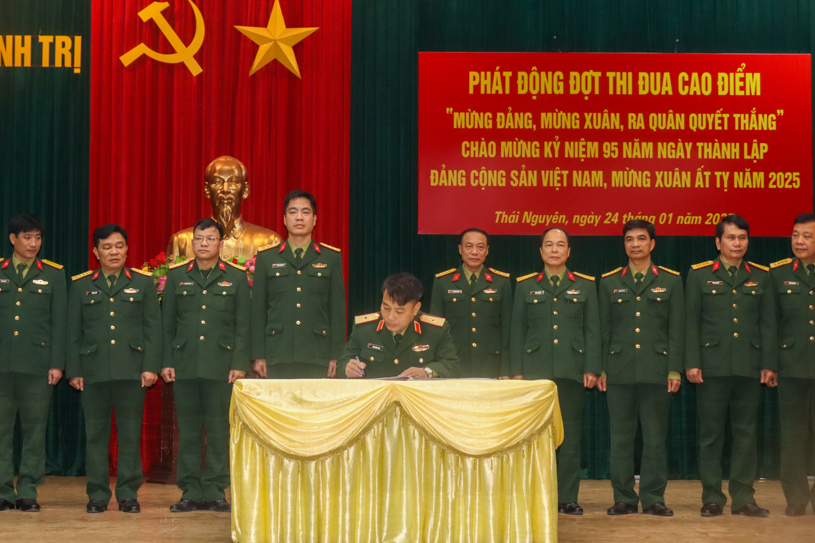 Thủ trưởng Cục Chính trị Quân khu cùng đại diện các cơ quan, đơn vị ký kết giao ước thi đua.