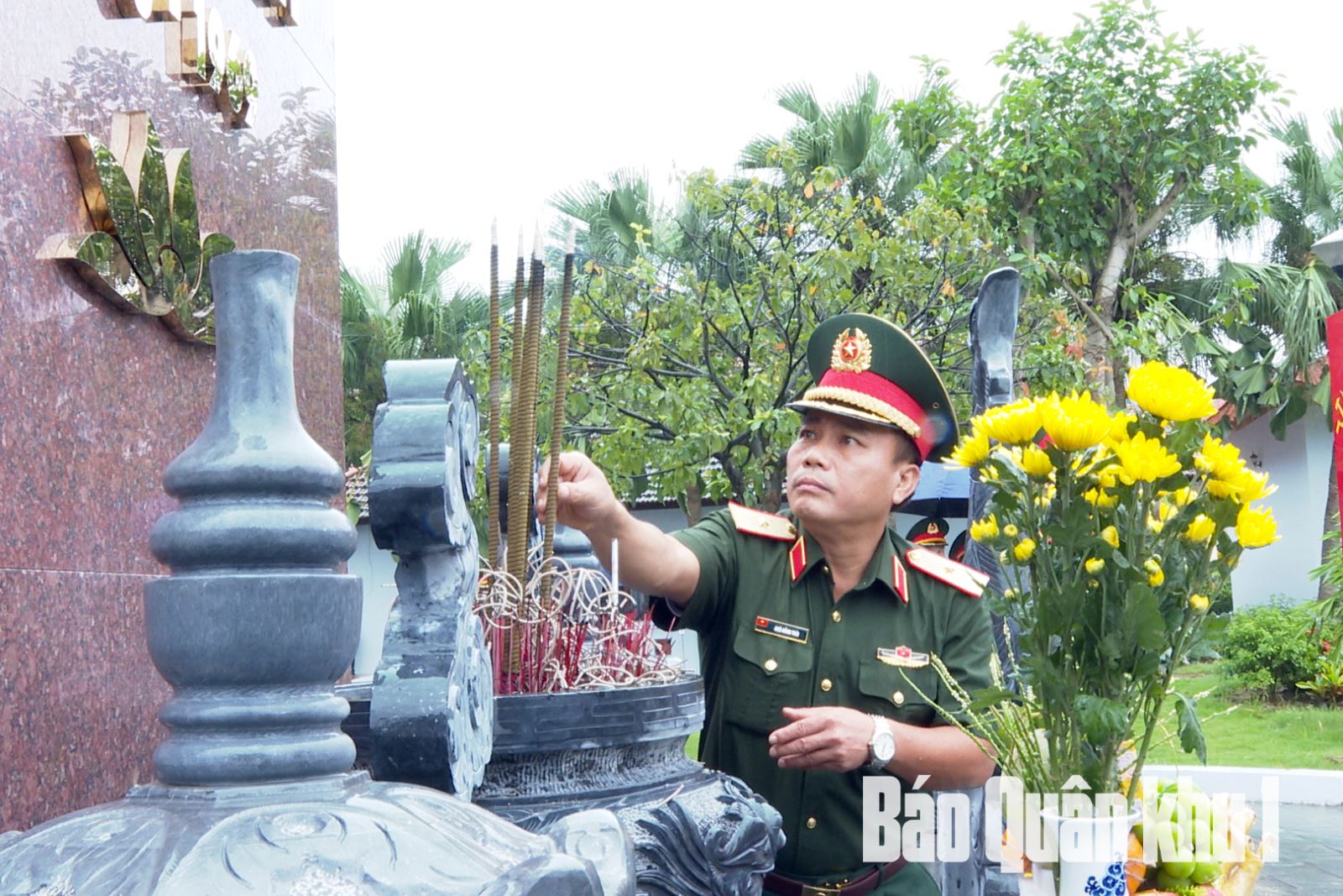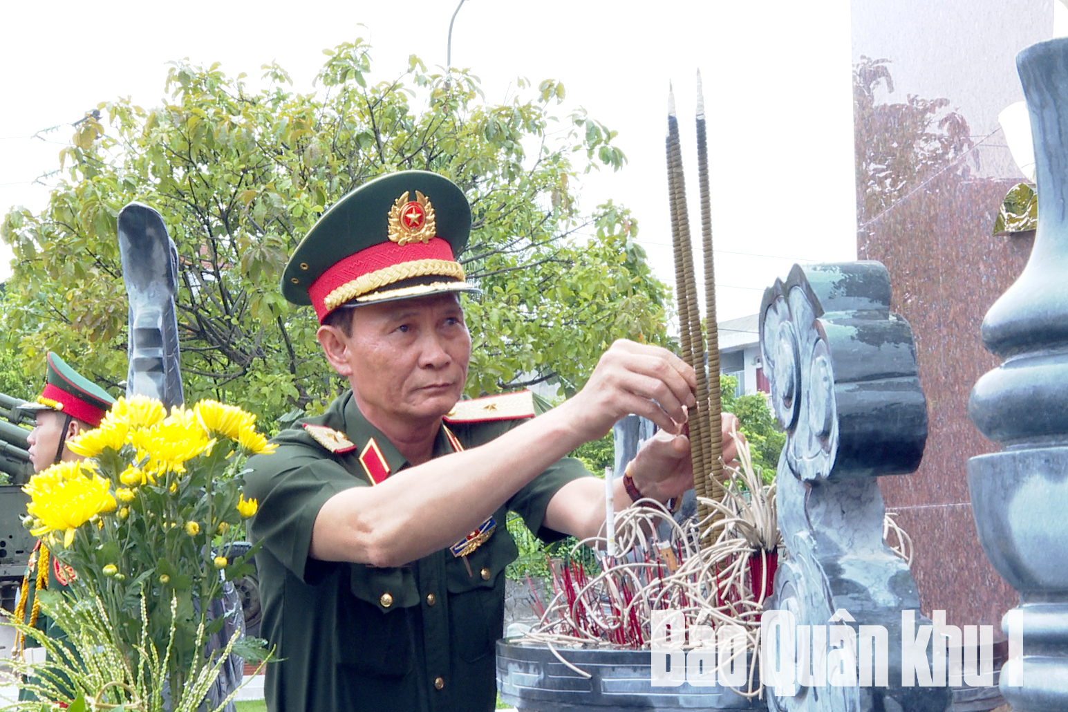 Thiếu tướng Ngô Hồng Thái, Phó Chủ nhiệm Chính trị Quân khu dâng hương Tượng đài Chủ tịch Hồ Chí Minh.