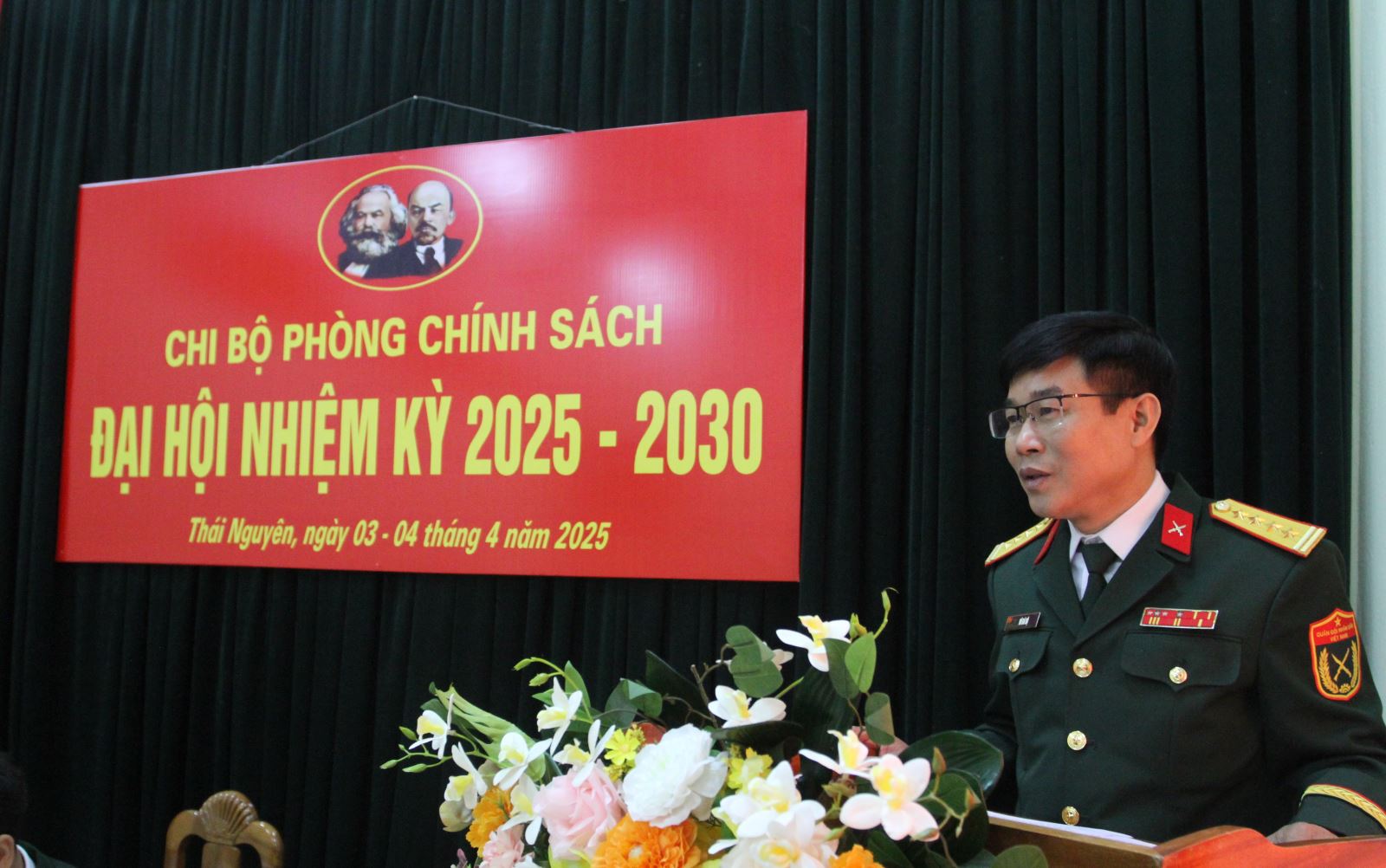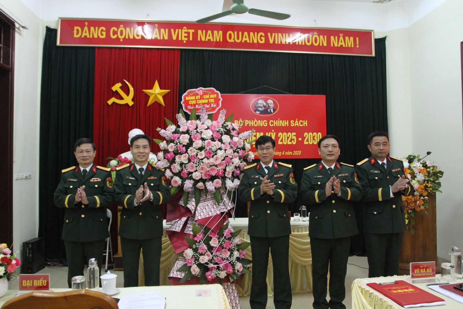 Phát biểu tại đại hội, đồng chí Phó chủ nhiệm Chính trị Quân khu ghi nhận, biểu dương, đánh giá cao những kết quả mà Chi bộ Phòng Chính sách đạt được trong nhiệm kỳ qua. Đồng thời yêu cầu, nhiệm kỳ tới, Chi bộ Phòng Chính sách tiếp tục quán triệt sâu sắc đường lối quan điểm, chủ trương của Đảng, chính sách, pháp luật Nhà nước, nghị quyết, chỉ thị, mệnh lệnh của Quân ủy Trung ương, Bộ Quốc phòng, Đảng ủy Quân khu; tập trung chủ trương biện pháp lãnh đạo quyết tâm đột phá nâng cao chất lượng công tác tham mưu cho Đảng ủy, chỉ huy Cục Chính trị và Đảng ủy, Thủ trưởng Bộ tư lệnh Quân khu về công tác chính sách bảo đảm chất lượng hiệu quả, đáp ứng yêu cầu nhiệm vụ trong tình hình mới; lãnh đạo xây dựng cơ quan VMTD “mẫu mực, tiêu biểu”.