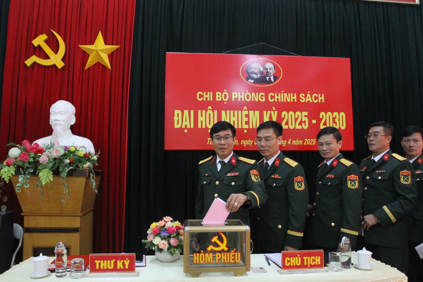 Cán bộ, đảng viên Chi bộ Phòng Chính sách bỏ phiếu bầu Ban Chấp hành Chi bộ nhiệm kỳ 2025-2030.