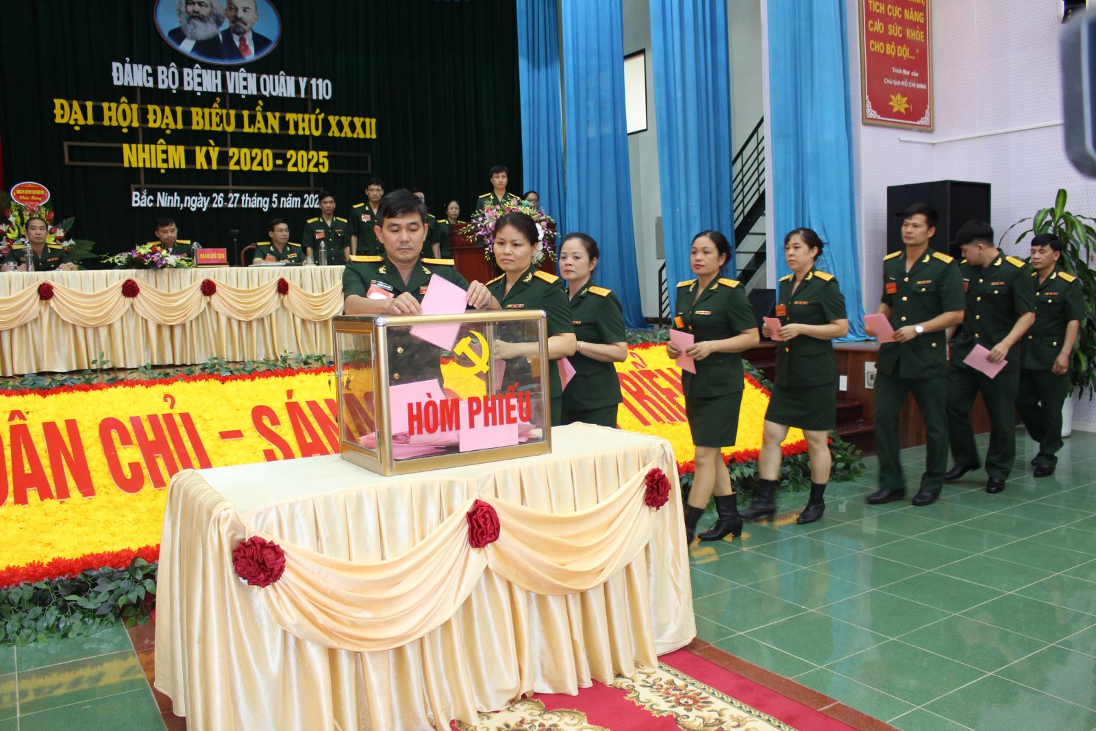 Các đại biểu bầu cử Ban Chấp hành Đảng bộ Bệnh viện Quân y 110 nhiệm kỳ 2020-2025.