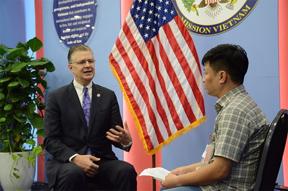 Đại sứ Daniel Kritenbrink trả lời phỏng vấn. Ảnh: VĂN HIẾU.