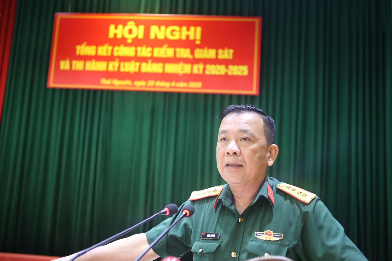 Đại tá Nông Văn Hòa, Phó Chủ nhiệm UBKT Đảng ủy Quân khu phát biểu tại hội nghị.