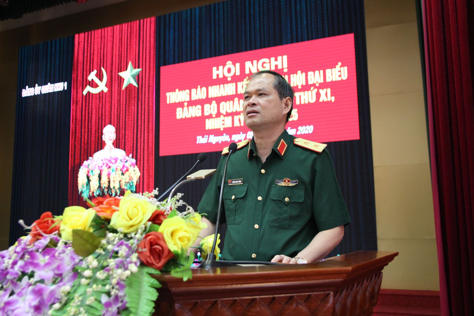 Trung tướng Dương Đình Thông, Bí thư Đảng ủy, Chính ủy Quân khu thông báo nhanh kết quả của Đại hội đại biểu Đảng bộ Quân đội lần thứ XI, nhiệm kỳ 2020-2025.