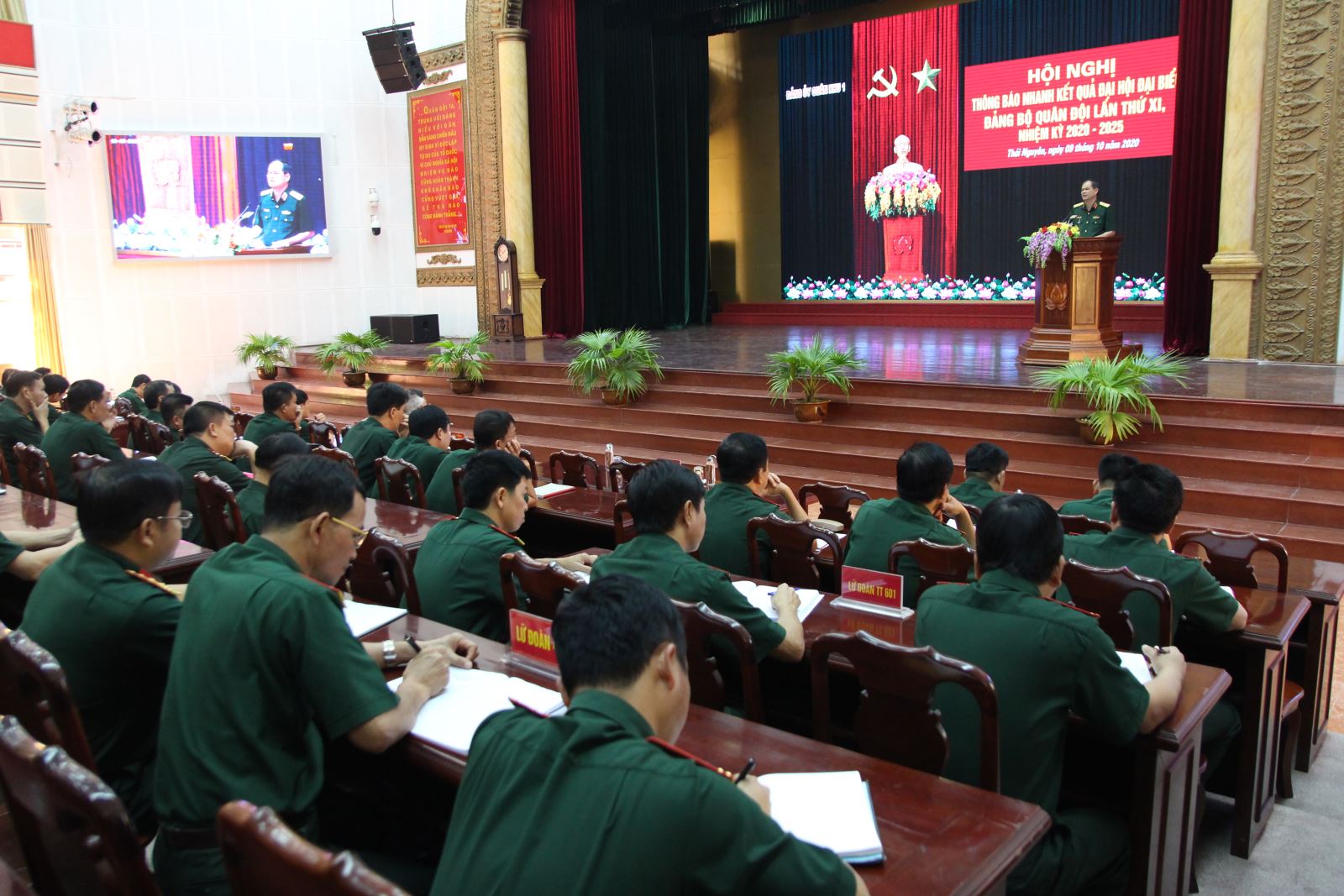 Tại hội nghị, Trung tướng Dương Đình Thông, Bí thư Đảng ủy, Chính ủy Quân khu đã thông báo những kết quả chính của Đại hội đại biểu Đảng bộ Quân đội lần thứ XI, nhiệm kỳ 2020-2025; quán triệt nội dung phát biểu chỉ đạo của Tổng Bí thư, Chủ tịch nước Nguyễn Phú Trọng tại đại hội và thông tin nhanh kết quả Hội nghị lần thứ 13, Ban Chấp hành Trung ương Đảng (khóa XII).