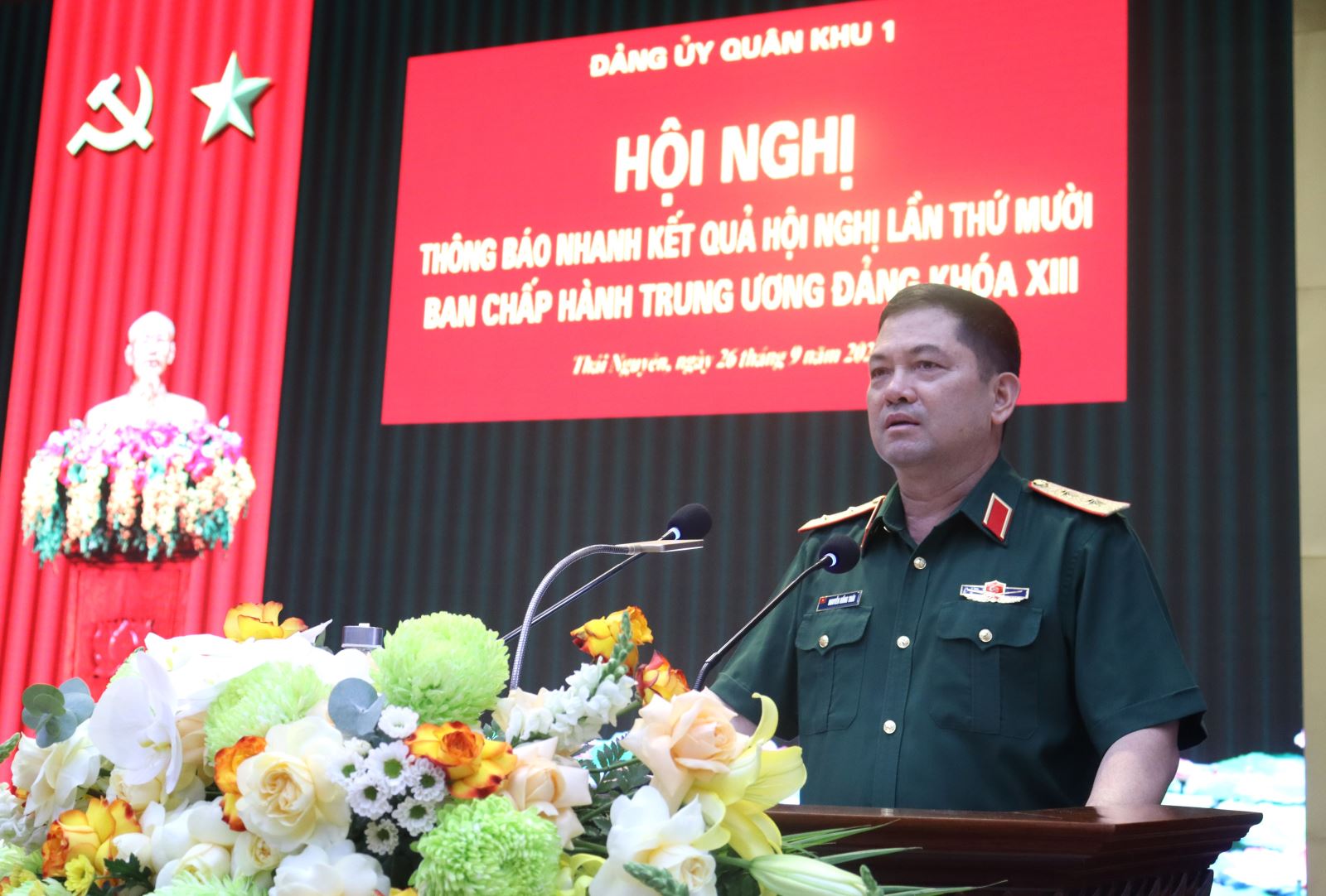 Trung tướng Nguyễn Hồng Thái, Ủy viên Trung ương Đảng, Tư lệnh Quân khu thông báo nhanh kết quả Hội nghị lần thứ 10, Ban Chấp hành Trung ương Đảng khóa XIII.