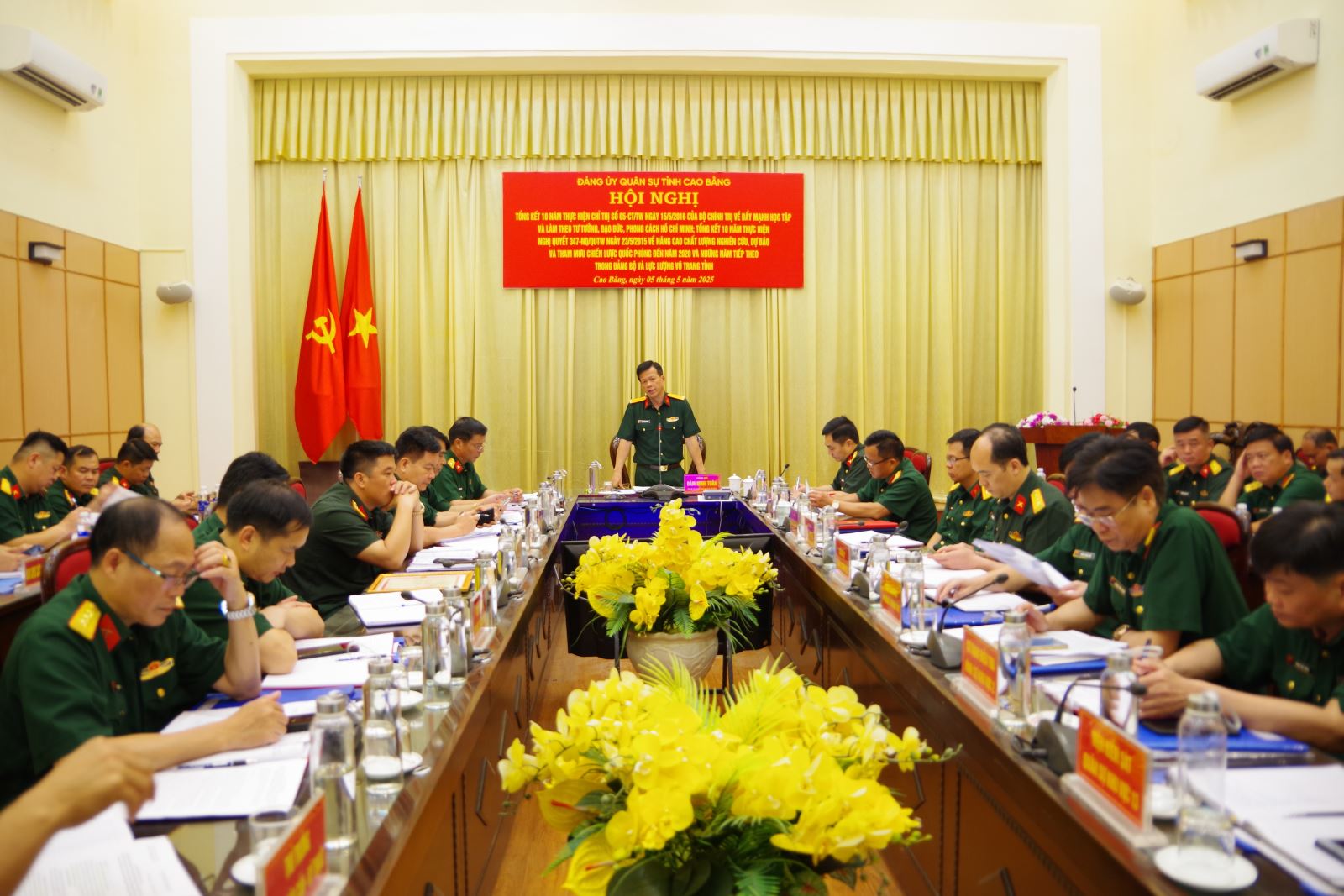 Phát biểu kết luận hội nghị, Đại tá Đàm Minh Tuân, Chỉ huy trưởng Bộ CHQS tỉnh Cao Bằng biểu dương các đơn vị đã tích cực làm tốt việc học tập và làm theo Bác từ những việc làm cụ thể thiết thực, các đảng viên đã tích cực nêu gương cống hiến có lối sống, đạo đức trong sáng, đặt lợi ích của tập thể lên cao nhất, có những tư duy đột phá trong công tác. Đồng thời yêu cầu các đơn vị cần tiếp tục phối hợp chặt chẽ với các lực lượng chức năng trên địa bàn làm tốt công tác nắm tình hình, đảm bảo an ninh chính trị, trật tự an toàn xã hội trên địa bàn, nhất là khu vực biên giới. Nghiên cứu dự báo tình hình tham mưu đúng, trúng, hiệu quả sau khi sắp xếp lại tổ chức bộ máy.