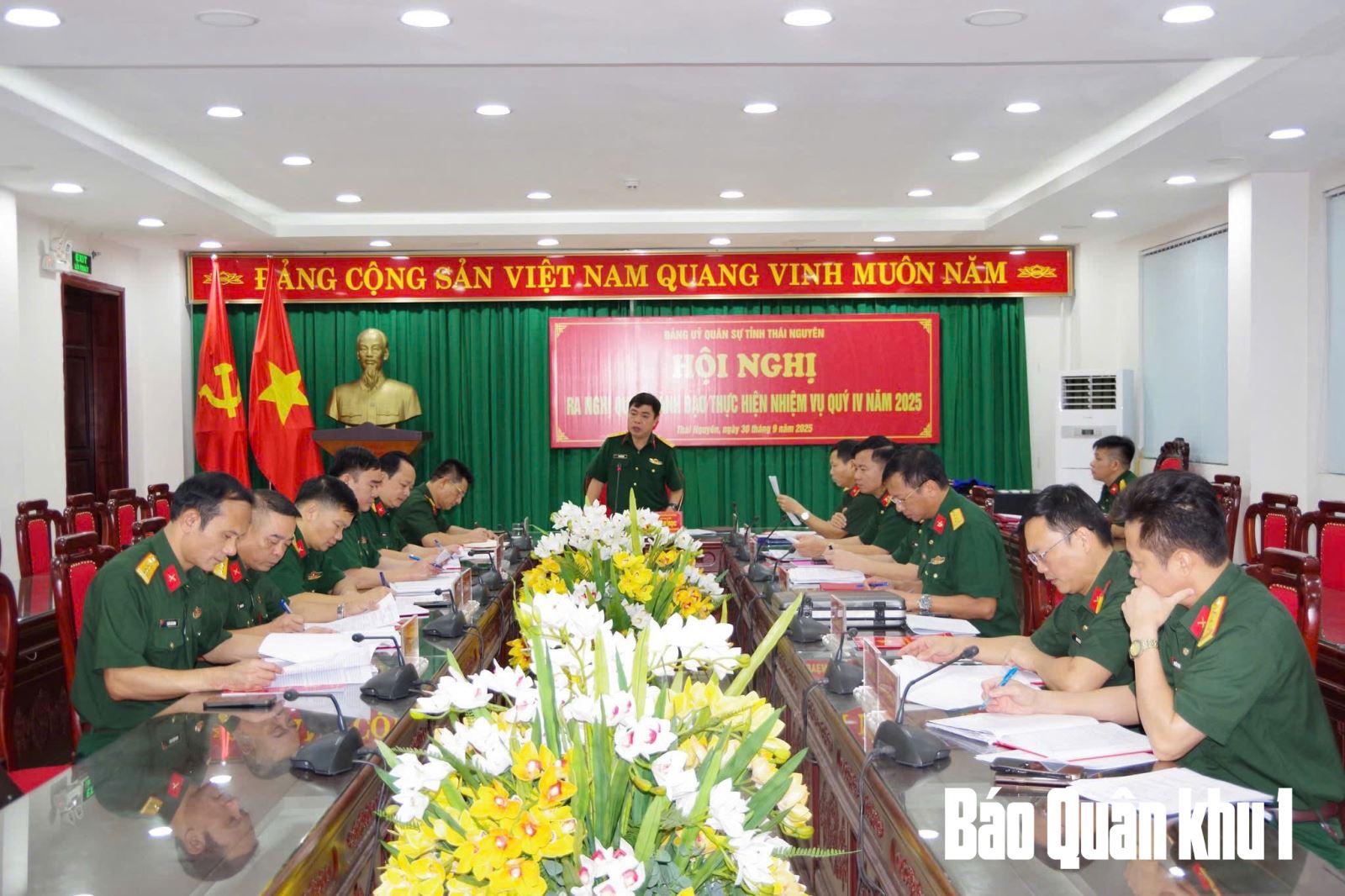 Sáng 30-9, Đảng ủy Quân sự tỉnh Thái Nguyên tổ chức hội nghị ra Nghị quyết lãnh đạo thực hiện nhiệm vụ quý IV năm 2025. Đại tá Ma Công Học, Phó Bí thư Thường trực Đảng ủy, Chính ủy Bộ CHQS tỉnh Thái Nguyên chủ trì hội nghị.