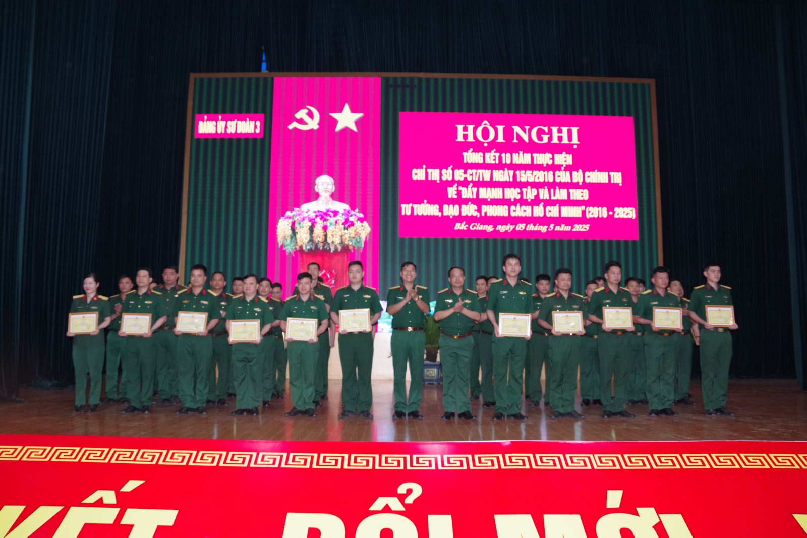 Tại hội nghị, Đảng ủy, Chỉ huy Sư đoàn 3 đã trao tặng giấy khen cho 16 tập thể và 19 cá nhân có thành tích tiêu biểu trong 10 năm thực hiện Chỉ thị 05 của Bộ Chính trị.