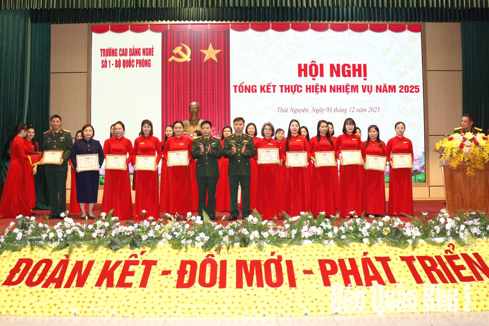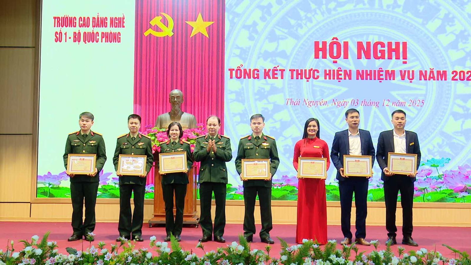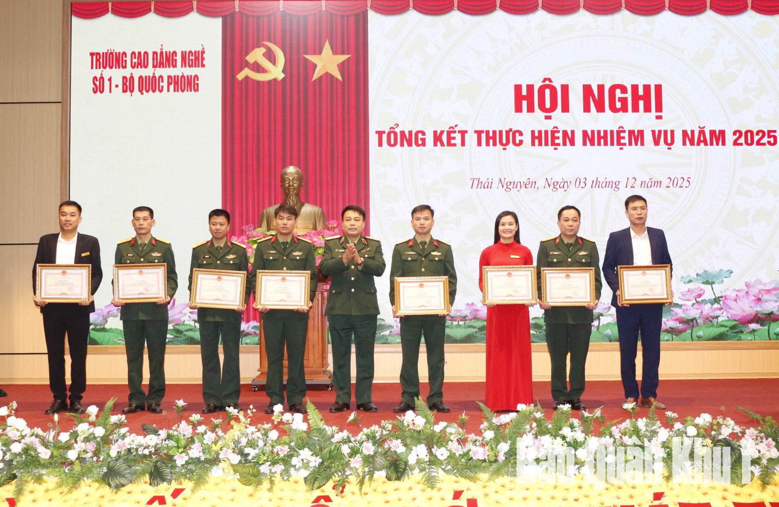 * Cũng trong buổi sáng cùng ngày, Trường Cao đẳng Nghề số 1 - Bộ Quốc phòng tổ chức hội nghị tổng kết thực hiện nhiệm vụ năm 2025. Hội nghị đánh giá, năm 2025, Đảng ủy, Ban Giám hiệu Nhà trường và các cơ quan, đơn vị đã tổ chức quán triệt, triển khai thực hiện nghiêm túc, hiệu quả nhiệm vụ quân sự, giáo dục đào tạo. Duy trì nền nếp chính quy, quản lý, rèn luyện kỷ luật, đơn vị bảo đảm an toàn tuyệt đối, hoàn thành tốt nhiệm vụ năm 2025.