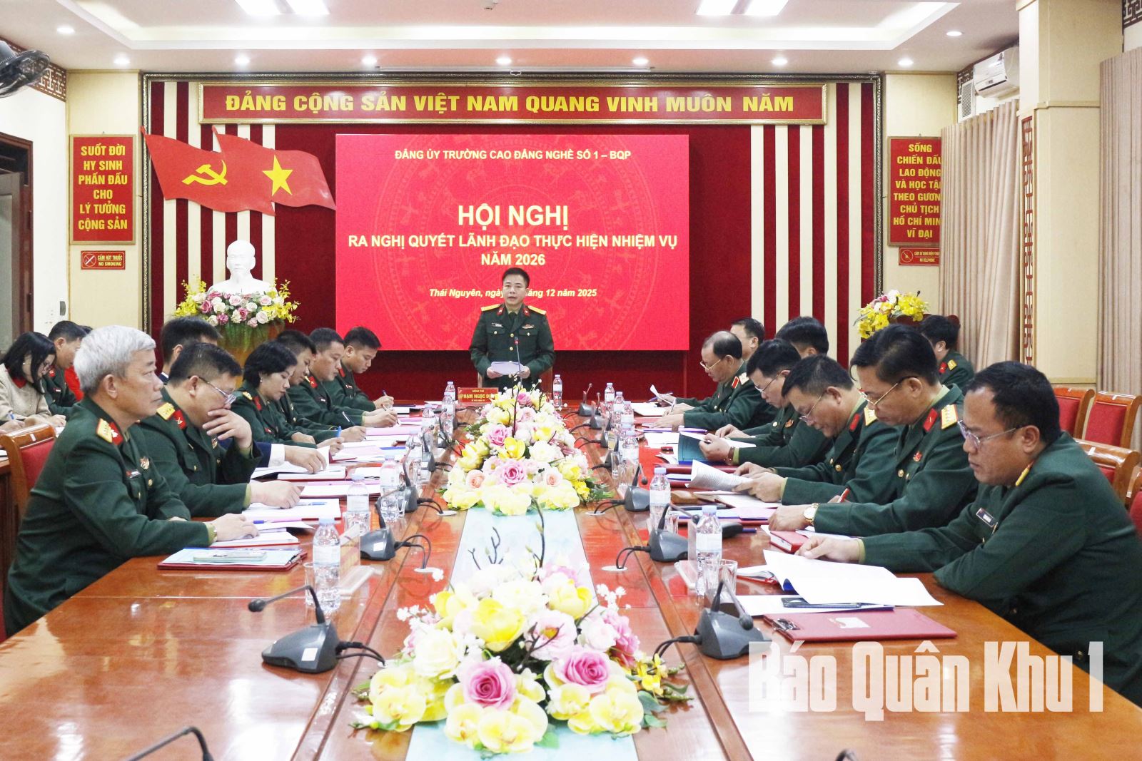 Sáng 3-12, Đảng uỷ Trường Cao đẳng Nghề số 1 - Bộ Quốc phòng tổ chức Hội nghị ra nghị quyết lãnh đạo thực hiện nhiệm vụ năm 2026. Thiếu tướng La Công Phương, Bí thư Đảng ủy, Chính ủy Quân khu dự và phát biểu chỉ đạo.