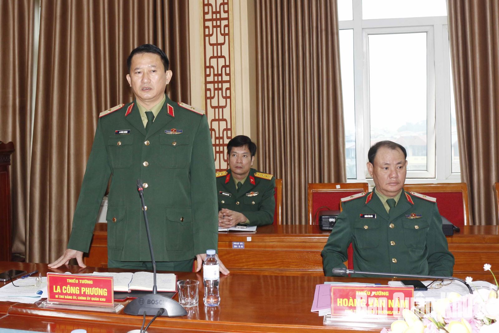 Thiếu tướng La Công Phương, Bí thư Đảng ủy, Chính ủy Quân khu dự và phát biểu chỉ đạo.