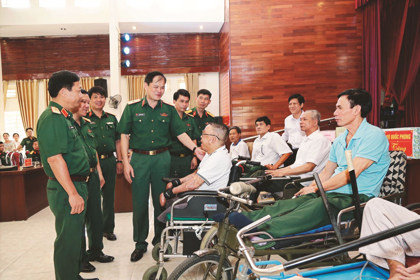 Thủ trưởng Bộ tư lệnh Quân khu thăm hỏi thương binh tại Trung tâm điều dưỡng thương binh Thuận Thành (Bắc Ninh). Ảnh: Thu Duyên
