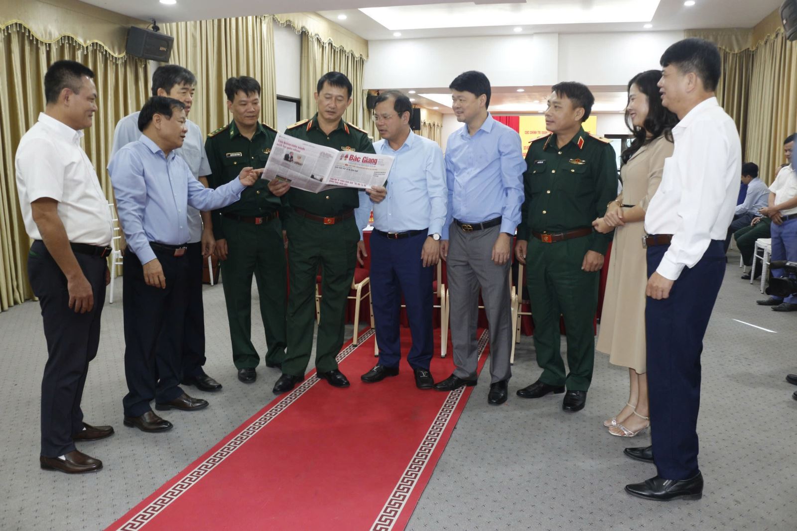 Lãnh đạo Quân khu và các cơ quan báo, đài PT-TH địa phương trao đổi về nội dung tuyên truyền trên báo chí tại Hội nghị sơ kết công tác phối hợp chỉ đạo tuyên truyền nhiệm vụ QP, QSĐP giữa Cục Chính trị với báo, đài phát PT-TH các tỉnh trên địa bàn Quân khu giai đoạn 2022-2024. Ảnh: Diệp Anh