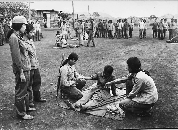 Bác sĩ Quân tình nguyện Việt Nam giúp LLVT cách mạng Campuchia huấn luyện và đào tạo quân y chiến trường.
