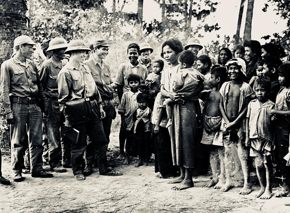 Đoàn công tác của Quân tình nguyện Việt Nam đến thăm, cứu trợ đồng bào Campuchia ngay sau khi đất nước thoát khỏi chế độ diệt chủng.