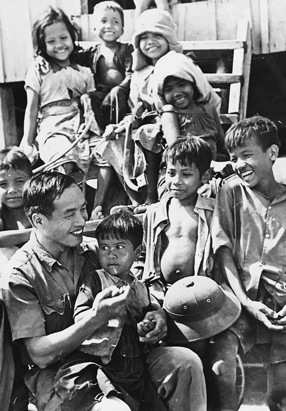 Cán bộ Quân tình nguyện Việt Nam với trẻ em Campuchia trong những ngày đầu giải phóng.