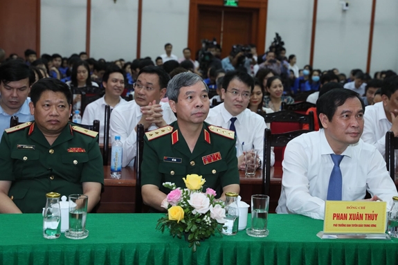 Cùng dự có các đồng chí: Võ Văn Thưởng, Ủy viên Bộ Chính trị, Bí thư Trung ương Đảng, Trưởng ban Tuyên giáo Trung ương; Vũ Đức Đam, Ủy viên Trung ương Đảng, Phó thủ tướng Chính phủ; các đồng chí lãnh đạo các ban, bộ, ngành Trung ương.