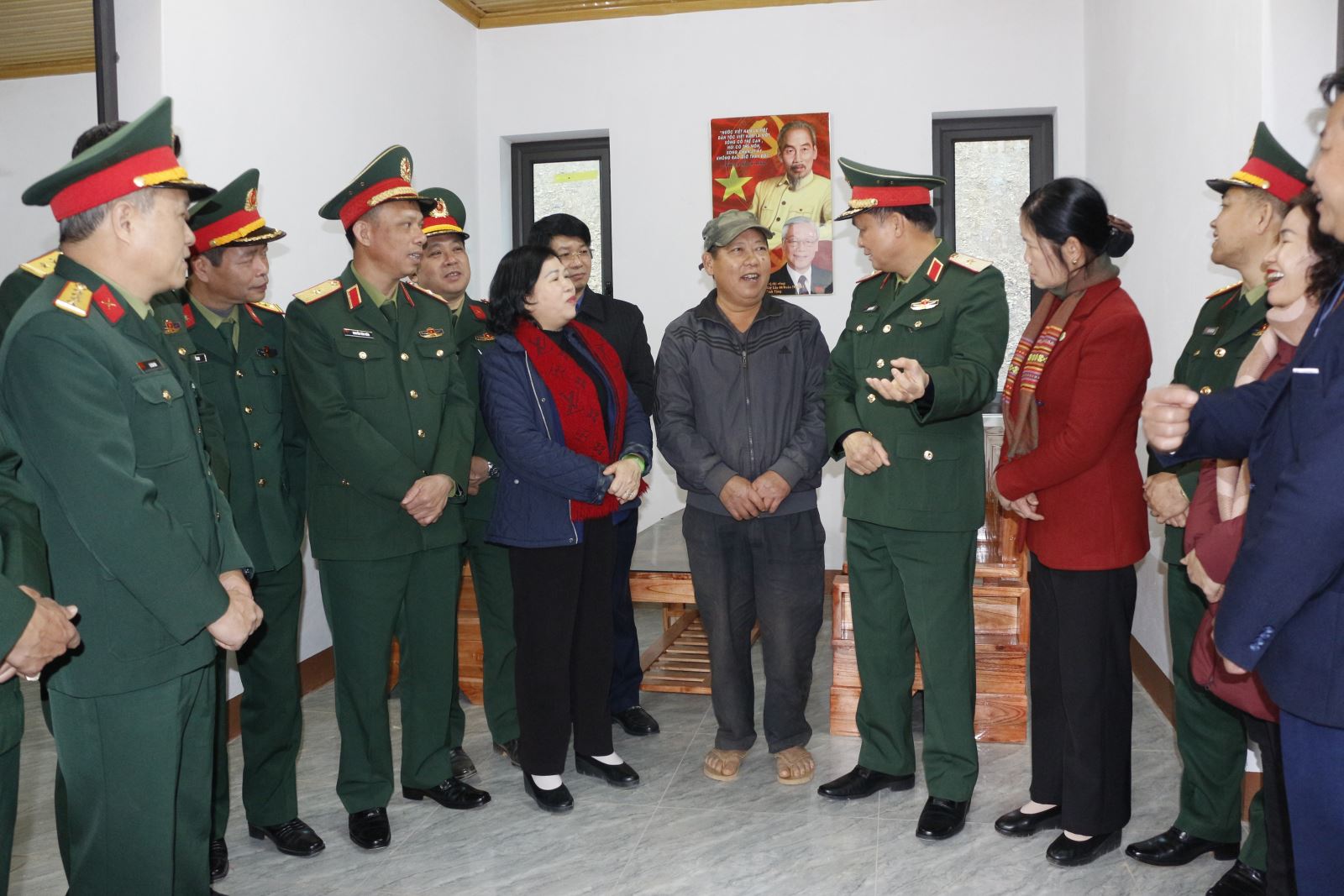 Lãnh đạo Quân khu, tỉnh Bắc Kạn và các đại biểu chúc mừng người dân thôn Tà Hàn nhận nhà mới.