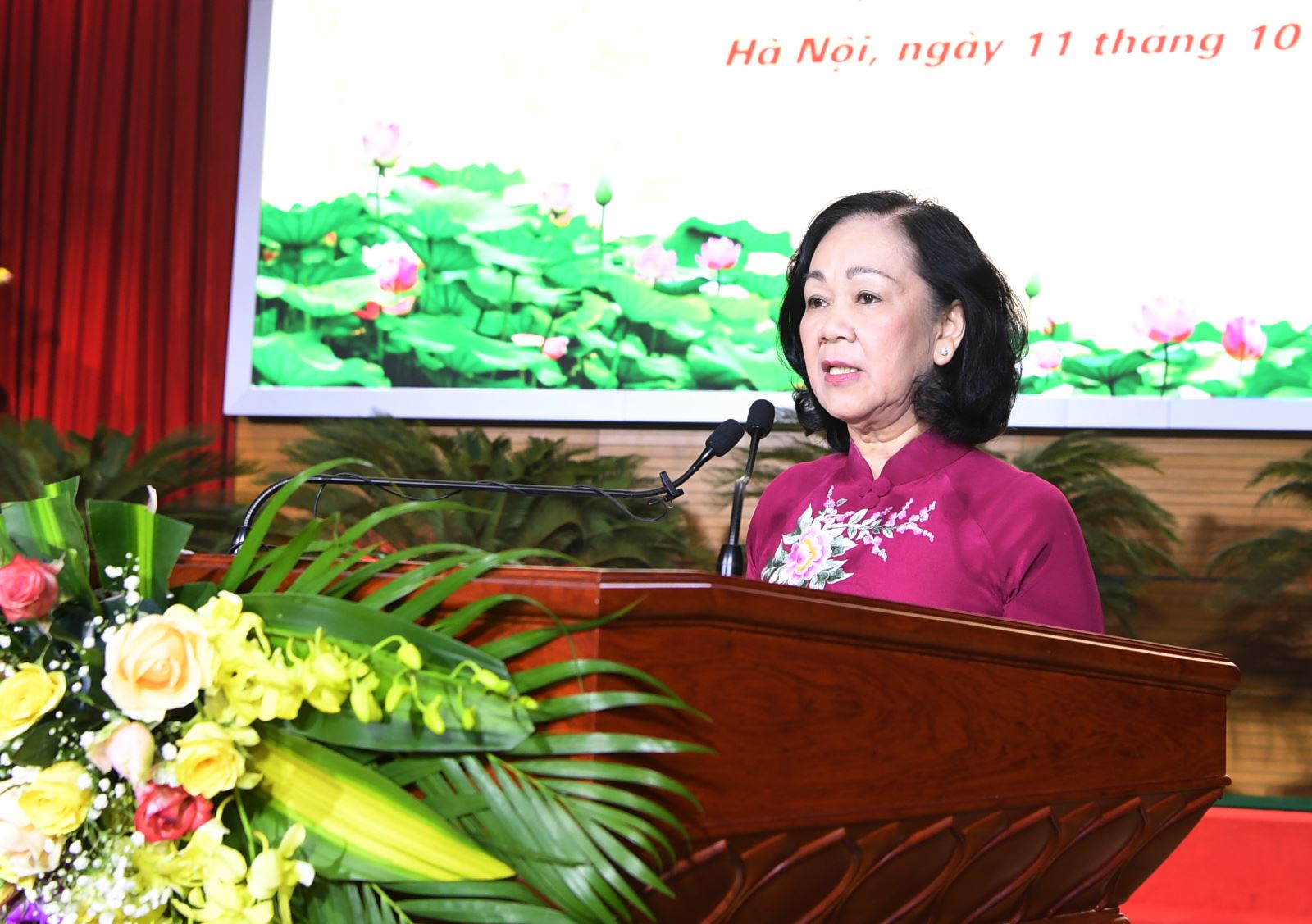 Đồng chí Trương Thị Mai, Ủy viên Bộ Chính trị, Trưởng Ban Dân vận Trung ương phát biểu tại buổi gặp mặt tuyên dương.