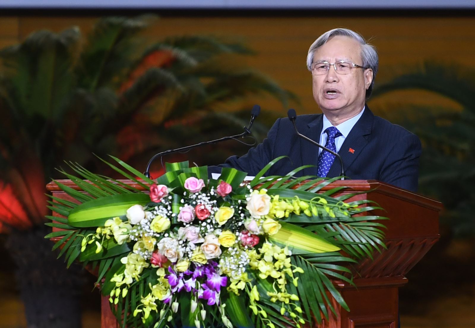 Đồng chí Trần Quốc Vượng, Ủy viên Bộ Chính trị, Trường trực Ban Bí thư phát biểu tại buổi gặp mặt tuyên dương.