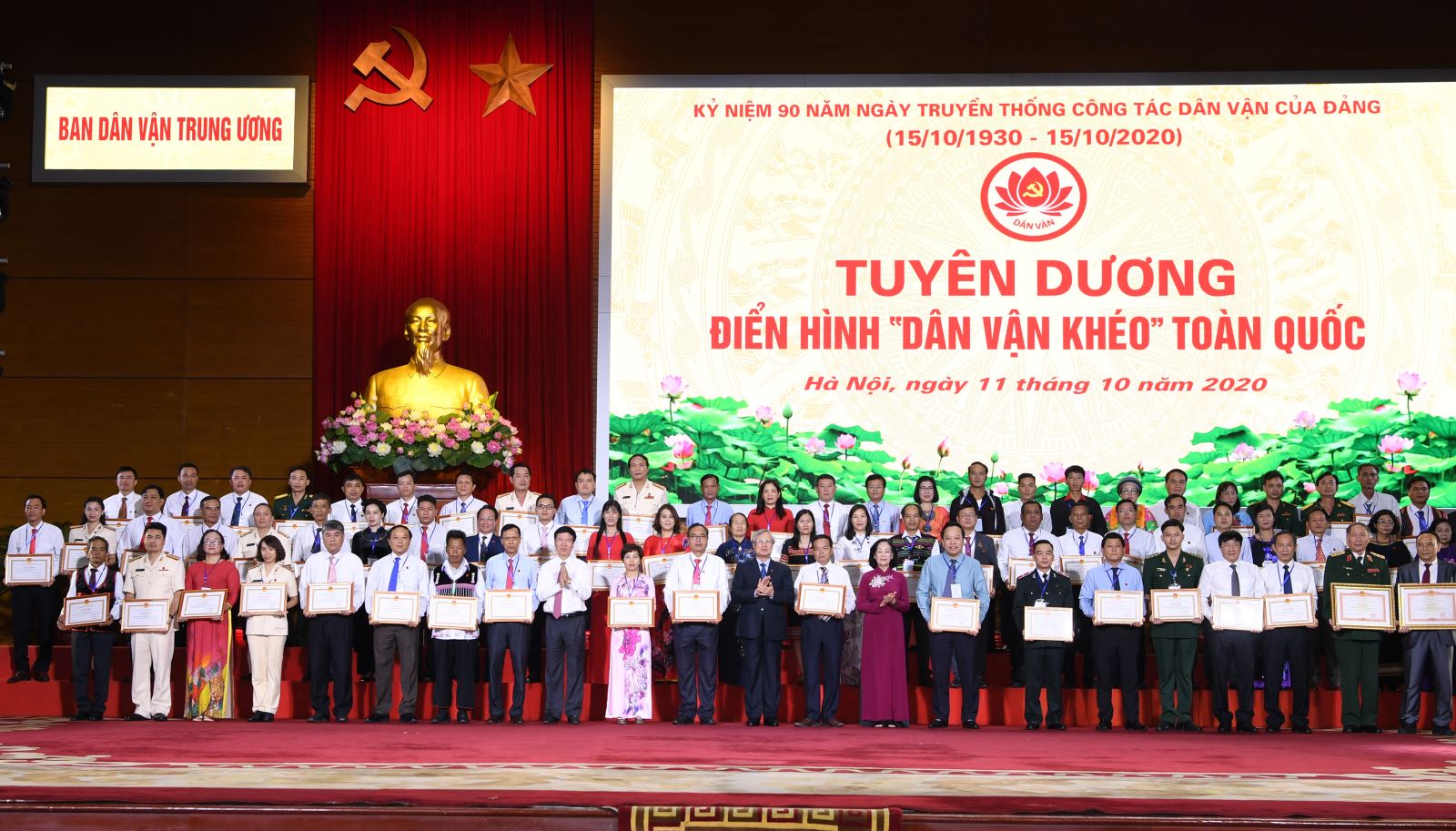 Ghi nhận những đóng góp to lớn của CTDV 90 năm qua, Đảng, Nhà nước đã trao tặng nhiều phần thưởng cao quý: Huân chương Sao Vàng; Huân chương Hồ Chí Minh; nhiều Huân chương Lao động hạng Nhất, trong đó có Huân chương Lao động hạng Nhất trong phong trào xây dựng nông thôn mới giai đoạn 2015-2020. Nhân dịp kỷ niệm 90 năm Ngày truyền thống CTDV của Đảng, Ban Dân vận Trung ương đã trao bằng khen, tuyên dương 72 tập thể, cá nhân có thành tích xuất sắc trong PTTĐ “Dân vận khéo”, giai đoạn 2015-2020.