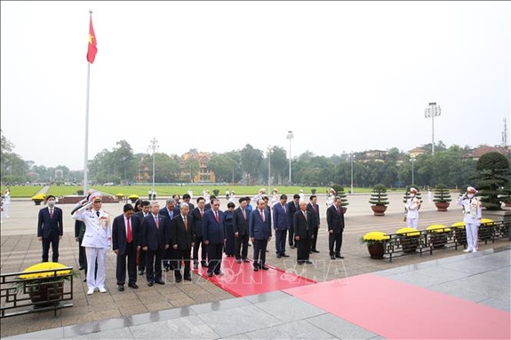 Đoàn đại biểu Lãnh đạo Đảng, Nhà nước đặt vòng hoa và vào Lăng viếng Chủ tịch Hồ Chí Minh.