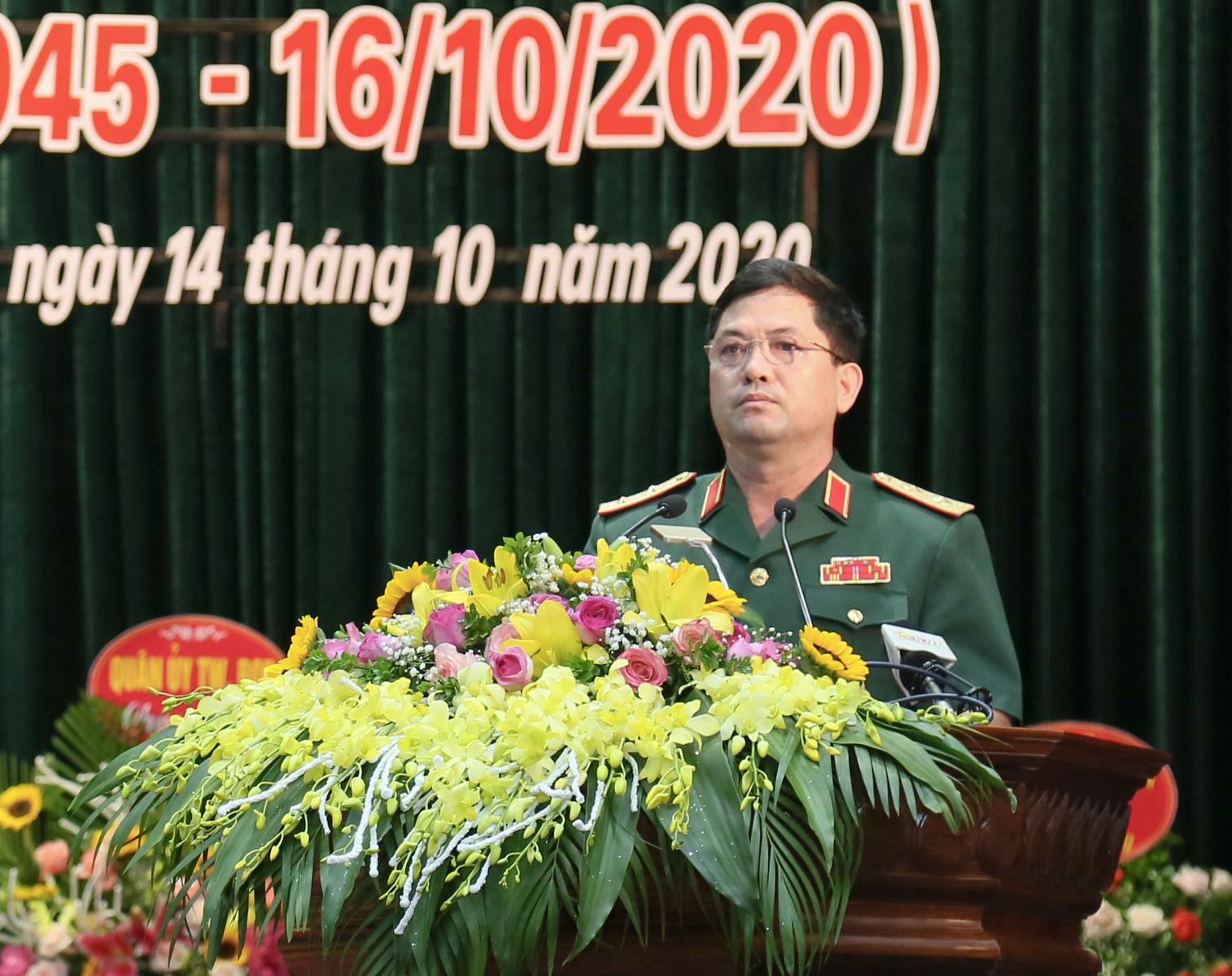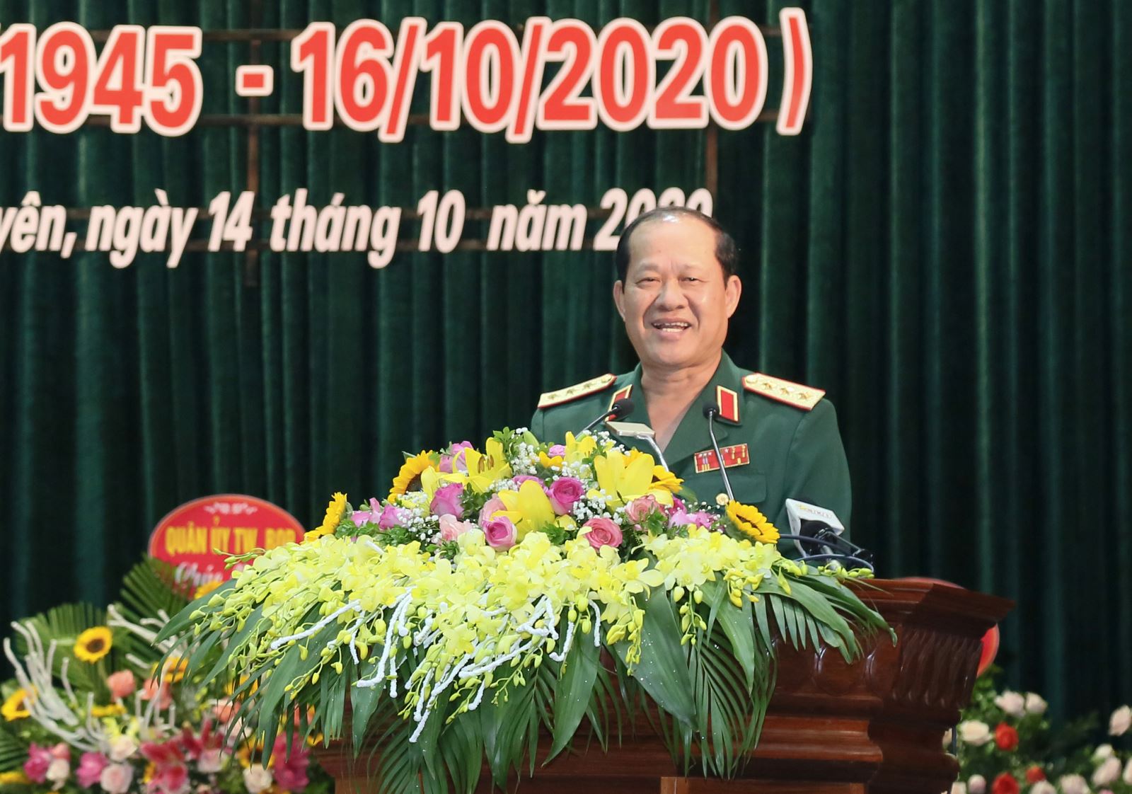 Trung tướng Nguyễn Hồng Thái, Tư lệnh Quân khu đọc diễn văn kỷ niệm 75 năm truyền thống LLVT Quân khu.