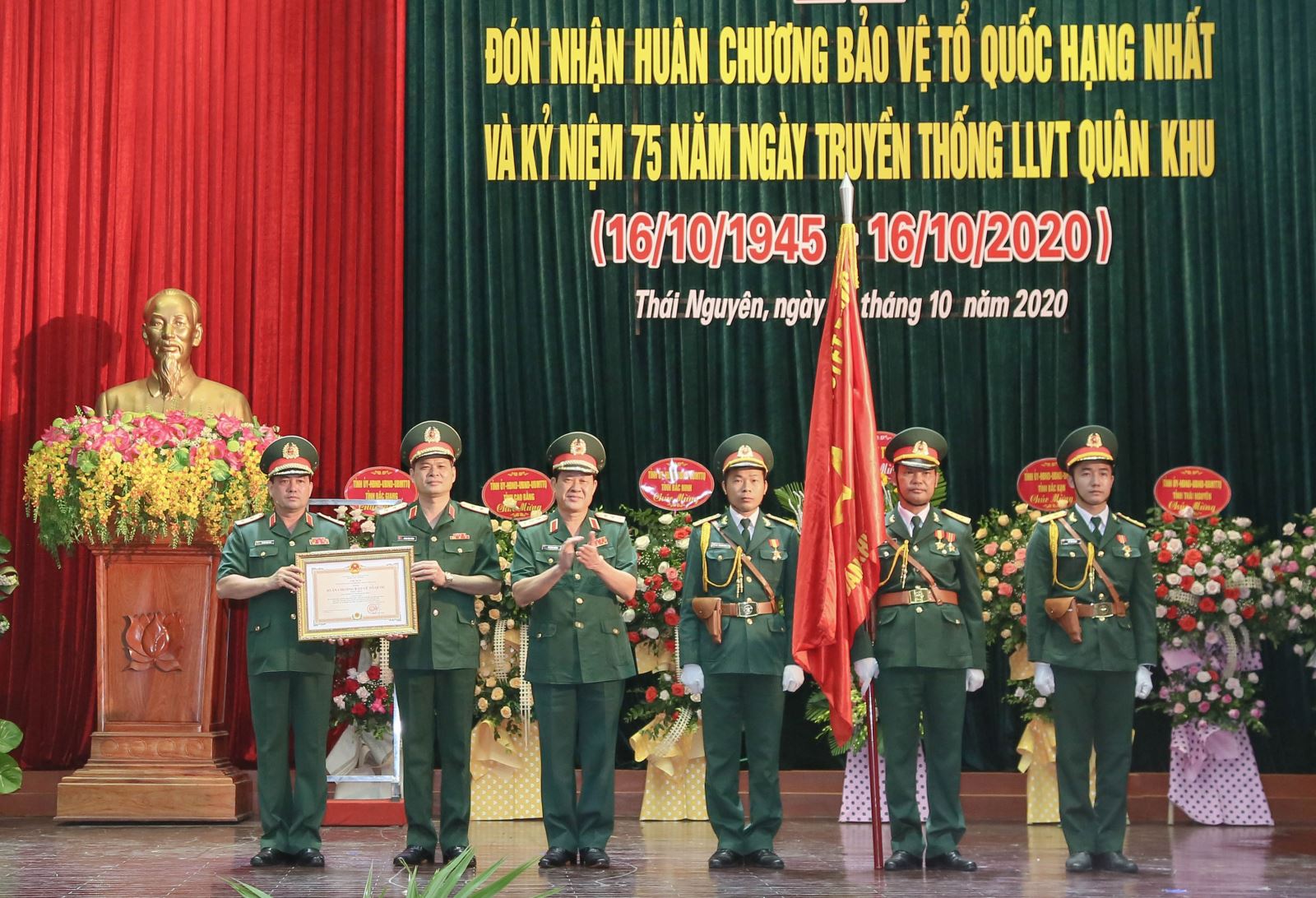 Sáng 14-10, Bộ tư lệnh Quân khu tổ chức trọng thể Lễ đón nhận Huân chương Bảo vệ Tổ quốc hạng Nhất và kỷ niệm 75 năm Ngày truyền thống LLVT Quân khu (16-10-1945/16-10-2020).