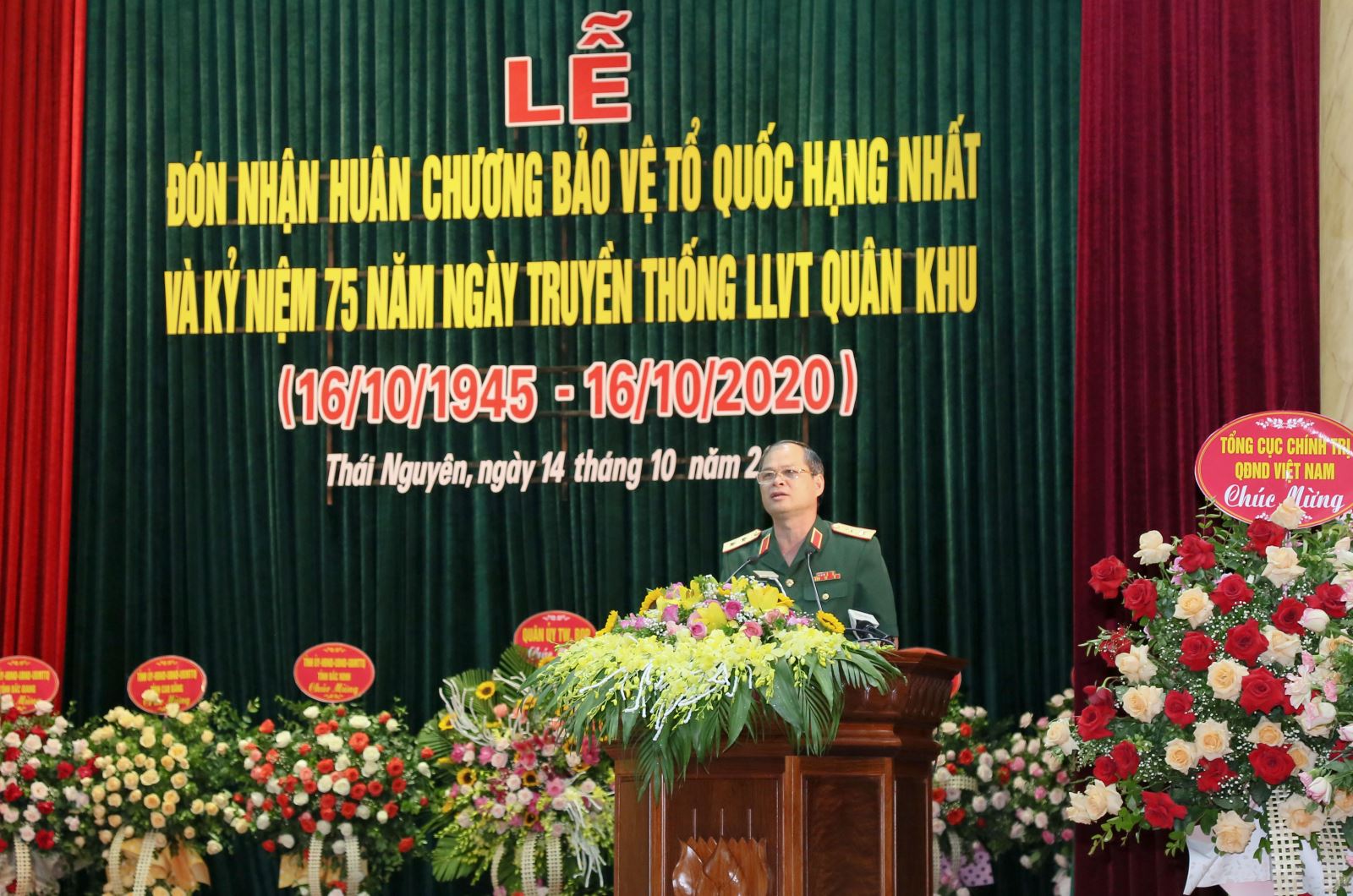 Tại lễ kỷ niệm, các đại biểu cùng ôn lại truyền thống 75 năm xây dựng, chiến đấu và trưởng thành, những chiến công tiêu biểu của LLVT Quân khu. Trung tướng Nguyễn Hồng Thái, Tư lệnh Quân khu đọc diễn văn kỷ niệm 75 năm truyền thống LLVT Quân khu. Cách đây 75 năm, ngày 16-10-1945, Chủ tịch Hồ Chí Minh đã ký Sắc lệnh thành lập 12 chiến khu trong cả nước, trong đó có Chiến khu 1, nay là Quân khu 1. Ngày 16-10 hằng năm trở thành Ngày truyền thống của LLVT Quân khu. Trong tiến trình cách mạng và trong từng thời kỳ, giai đoạn lịch sử cụ thể, để đáp ứng với yêu cầu nhiệm vụ, Quân khu 1 đã nhiều lần được điều chỉnh địa giới hành chính, với những tên gọi khác nhau như: Chiến khu 1, Liên khu 1, Liên khu Việt Bắc, Quân khu Việt Bắc và Quân khu 1 cho đến ngày nay. Với những chiến công và thành tích tiêu biểu đã đạt được trong 75 năm qua, LLVT Quân khu 1 vinh dự được Đảng, Nhà nước tặng thưởng nhiều phần thưởng cao quý, xây đắp nên truyền thống vẻ vang: “Trung hiếu, Tiên phong, Đoàn kết, Chiến thắng”. Quân và dân Việt Bắc - Quân khu 1 có nhiều công lao, đóng góp to lớn vào sự nghiệp đấu tranh cách mạng, giải phóng dân tộc qua hai cuộc kháng chiến chống thực dân Pháp và đế quốc Mỹ, là quê hương cách mạng, thủ đô kháng chiến trong cuộc kháng chiến chống thực dân Pháp, được Chủ tịch Hồ Chí Minh khen ngợi: “Cách mạng đã do Việt Bắc mà thành công, thì kháng chiến sẽ do Việt Bắc mà thắng lợi”.