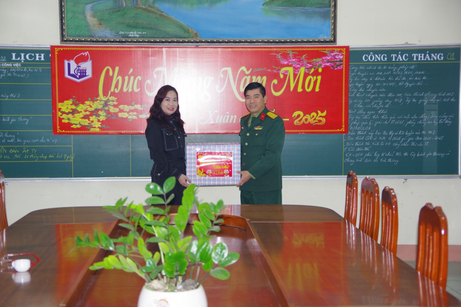 Đại tá Nguyễn Thành Đạt, Bí thư Đảng ủy, Chính ủy Lữ đoàn 210 chúc tết Ban Giám hiệu, giáo viên và học sinh Trường THPT Gang Thép.