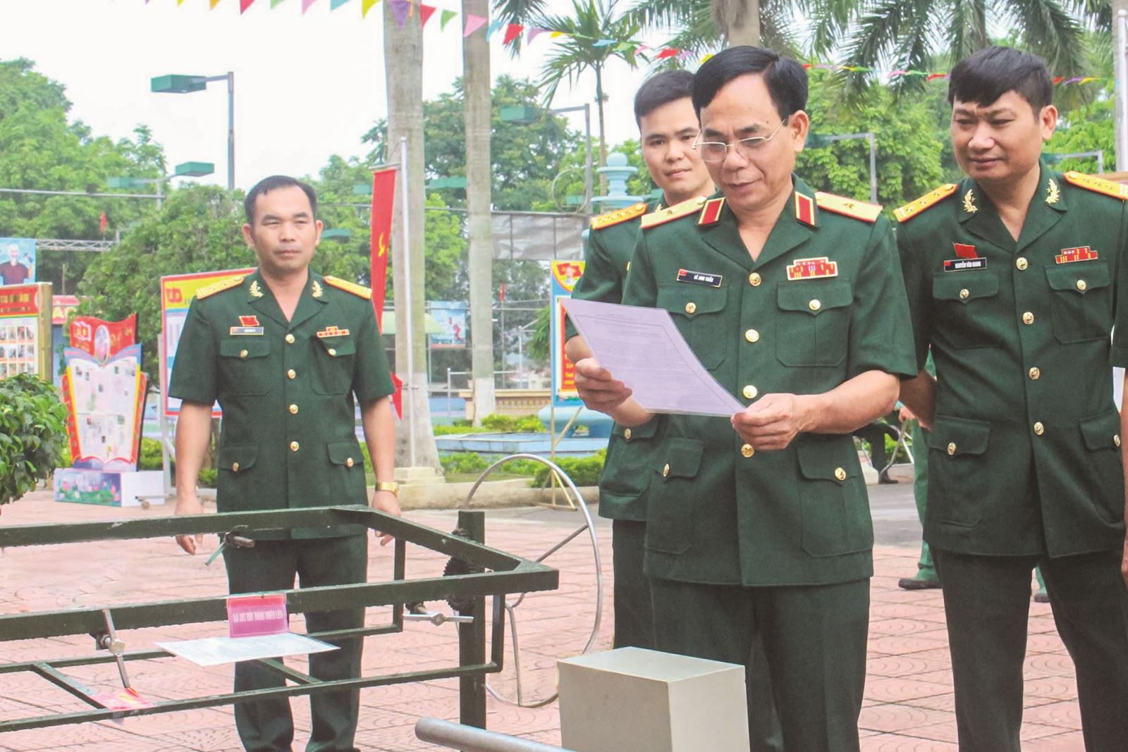 Thiếu tướng Lê Anh Tuấn, Phó tư lệnh Quân khu tham quan sáng kiến, cải tiến kỹ thuật tại Trường bắn Quốc gia khu vực 1. Ảnh: TH