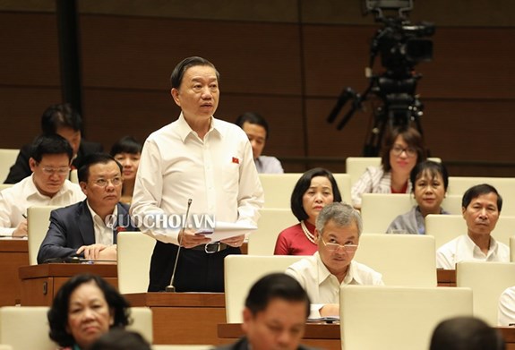 Bộ trưởng Bộ Công an Tô Lâm trả lời chất vấn các đại biểu. Ảnh: Quốc hội.