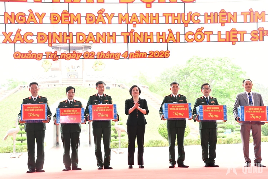 Dịp này, Phó thủ tướng Phạm Thị Thanh Trà đã trao quà tặng: Viện Pháp y Quân đội, Viện Sinh học (Viện Hàn lâm Khoa học và Công nghệ Việt Nam), các Đội quy tập hài cốt liệt sĩ và các gia đình chính sách.