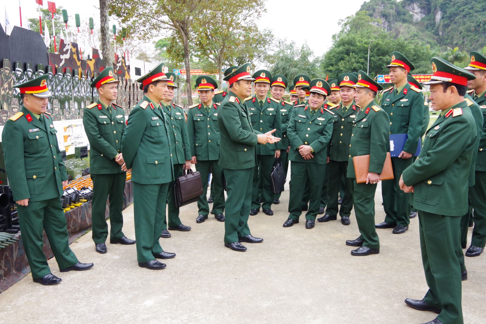 Thượng tướng Phùng Sỹ Tấn, Phó tổng Tham mưu trưởng Quân đội nhân dân Việt Nam cùng đoàn công tác Bộ Quốc phòng trao đổi với cán bộ, đảng viên Sư đoàn 346. Ảnh: Trần Tuyên