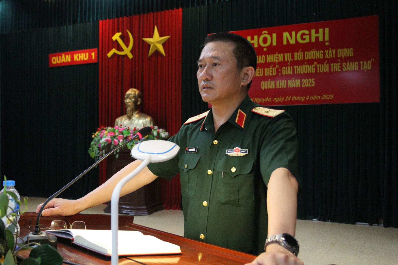 Phát biểu chỉ đạo hội nghị, đồng chí Chính ủy Quân khu yêu cầu cấp ủy, chỉ huy các cấp chủ động đổi mới tư duy trong lãnh đạo, chỉ đạo. Đẩy mạnh công tác tuyên truyền, giáo dục, xây dựng tập thể, cá nhân điển hình tiên tiến và nâng cao chất lượng sáng kiến, cải tiến kỹ thuật, ứng dụng khoa học công nghệ vào thực hiện hiệu quả nhiệm vụ của các cơ quan, đơn vị. Chủ động xây dựng kế hoạch, đăng ký chỉ tiêu, rà soát, phát hiện, lựa chọn, bồi dưỡng các cá nhân tiêu biểu, ý tưởng sáng tạo trong nghiên cứu khoa học, sáng kiến có tính ứng dụng cao, phù hợp với thực tiễn nhiệm vụ của các cơ quan, đơn vị lực lượng vũ trang Quân khu.