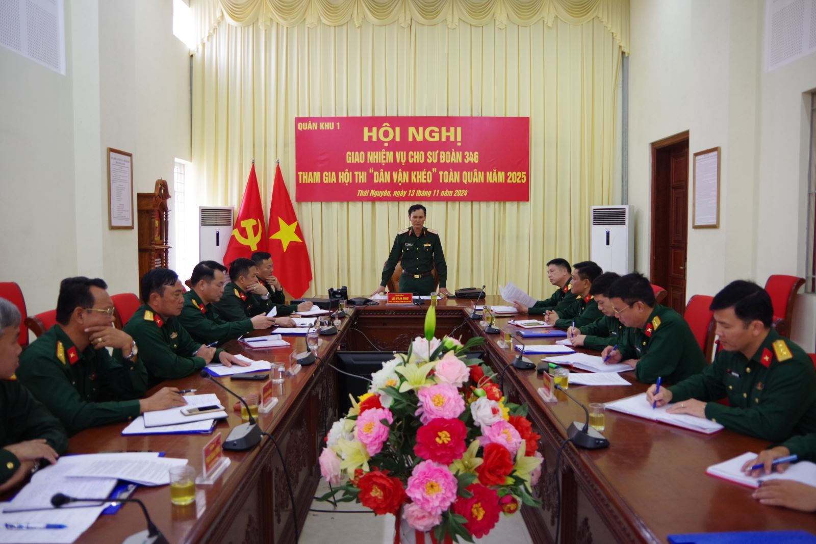 Phát biểu giao nhiệm vụ, Thiếu tướng Lê Văn Thơ, Chủ nhiệm Chính trị Quân khu nhấn mạnh: Hội thi là dịp nâng cao nhận thức, trách nhiệm, bồi dưỡng kiến thức, kỹ năng tiến hành công tác dân vận cho cấp ủy, chỉ huy, chính ủy, chính trị viên, cơ quan các cấp và cán bộ, chiến sĩ, các lực lượng thực hiện nhiệm vụ công tác dân vận của lực lượng vũ trang Quân khu trong thời kỳ mới, nhất là kinh nghiệm, kiến thức, kỹ năng tuyên truyền vận động, tham gia xử lý những tình huống, vụ việc phức tạp phát sinh trong quá trình thực hiện nhiệm vụ ở đơn vị cơ sở. Đồng thời yêu cầu Sư đoàn 346 xây dựng kế hoạch, chương trình, lựa chọn diễn viên, xây dựng kịch bản, chuẩn bị đầy đủ cơ sở, vật chất và tổ chức luyện tập một cách chặt chẽ, có chất lượng, bảo đảm an toàn mọi mặt, đạt thành tích cao trong Hội thi “Dân vận khéo” toàn quân năm 2025.