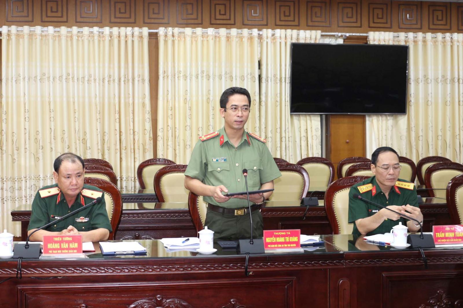 Thượng tá Nguyễn Hoàng Trí Kháng, Phó giám đốc Công an tỉnh Thái Nguyên phát biểu tại Hội nghị họp Ban tổ chức Liên hoan Truyền hình toàn quân lần thứ XIV.