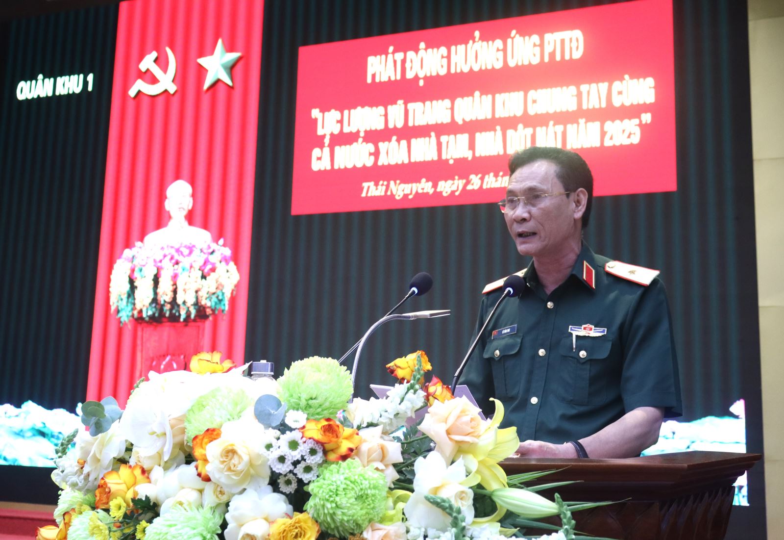 Thiếu tướng Lê Văn Thơ, Chủ nhiệm Chính trị Quân khu phát động hưởng ứng phong trào thi đua LLVT Quân khu chung tay cùng cả nước xóa nhà tạm, nhà dột nát trong năm 2025.