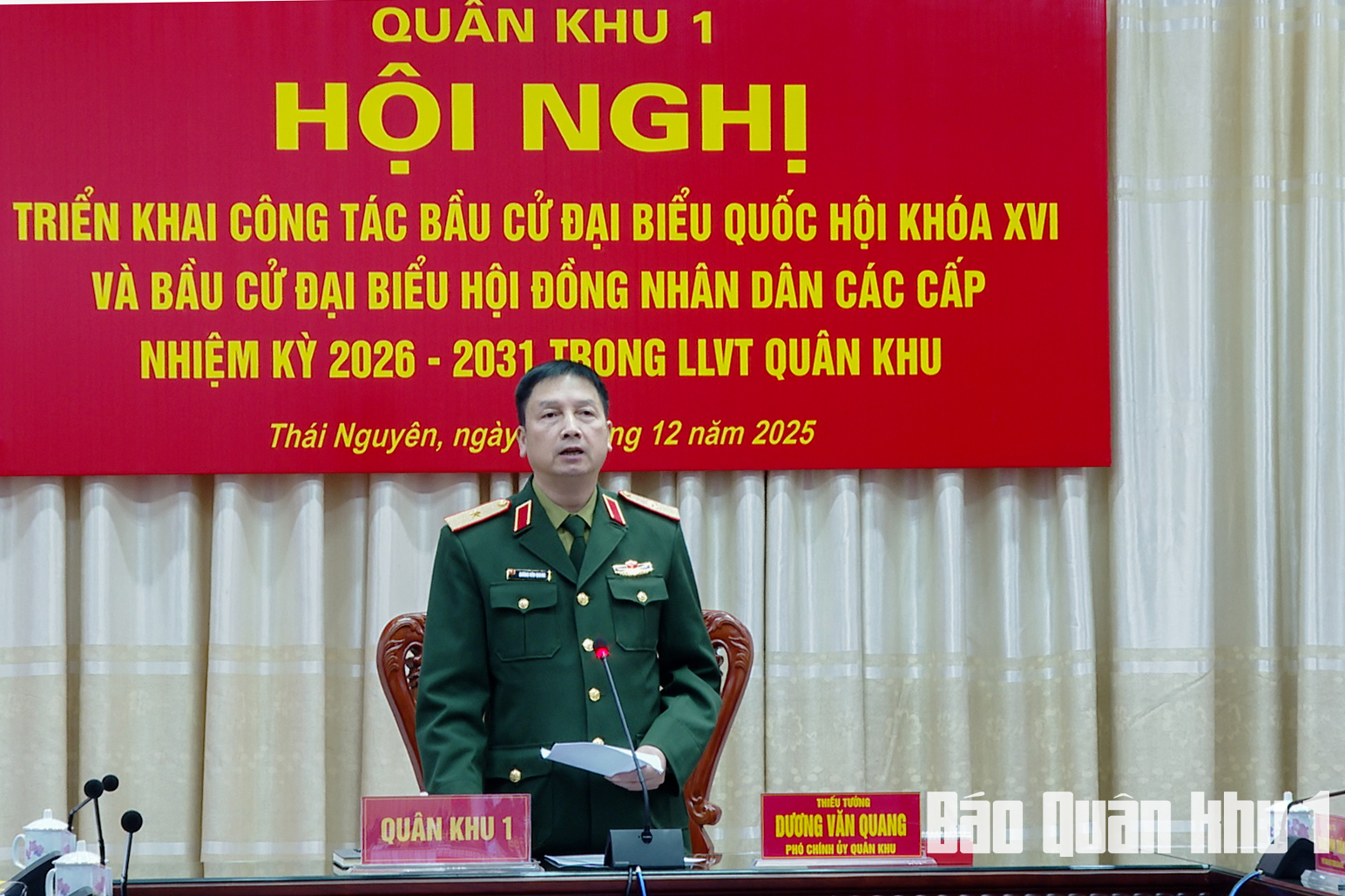 Sáng 18-12, Quân khu tổ chức hội nghị triển khai công tác bầu cử đại biểu Quốc hội khóa XVI và đại biểu Hội đồng nhân dân các cấp nhiệm kỳ 2025–2030. Thiếu tướng Dương Văn Quang, Phó Chính ủy Quân khu chủ trì hội nghị. Hội nghị được tổ chức theo hình thức trực tiếp kết hợp trực tuyến, kết nối tới 14 điểm cầu các cơ quan, đơn vị trong toàn Quân khu.