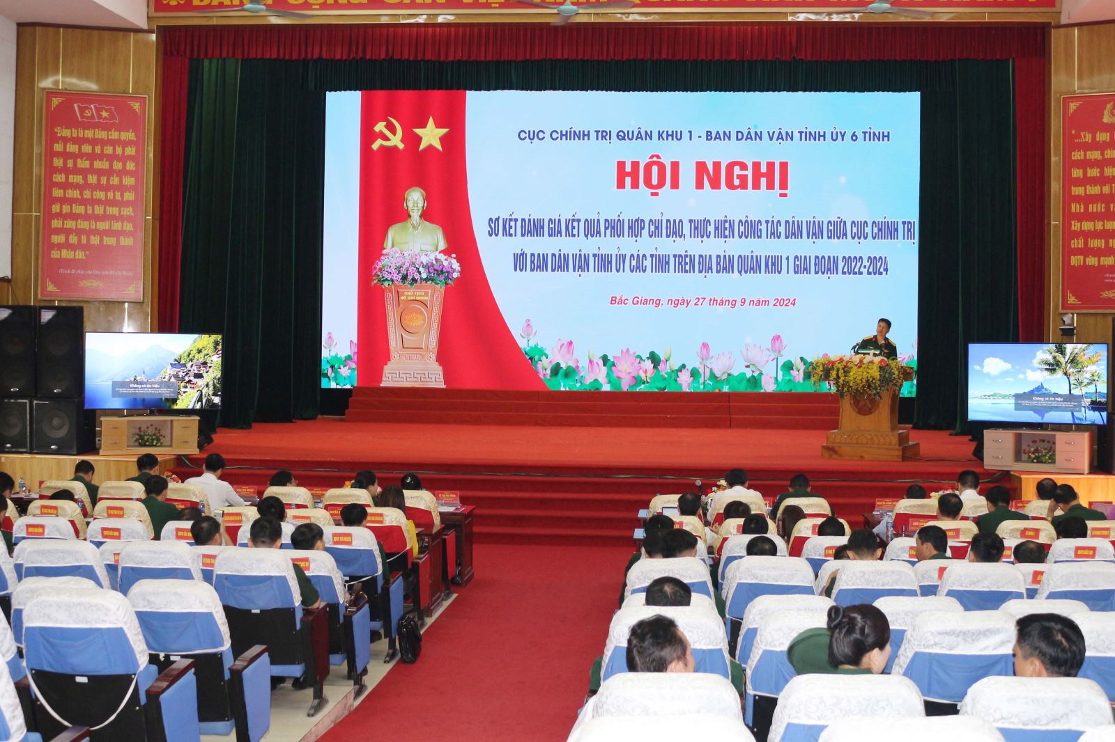 Ngày 27-9, tại thành phố Bắc Giang, Cục Chính trị, Ban Dân vận Tỉnh ủy 6 tỉnh phối hợp tổ chức Hội nghị sơ kết công tác phối hợp chỉ đạo thực hiện công tác dân vận giai đoạn 2022 - 2024. Đại tá Dương Văn Quang, Phó chủ nhiệm Chính trị Quân khu và đồng chí Phạm Văn Thịnh, Trưởng ban Ban dân vận Tỉnh ủy Bắc Giang chủ trì hội nghị.