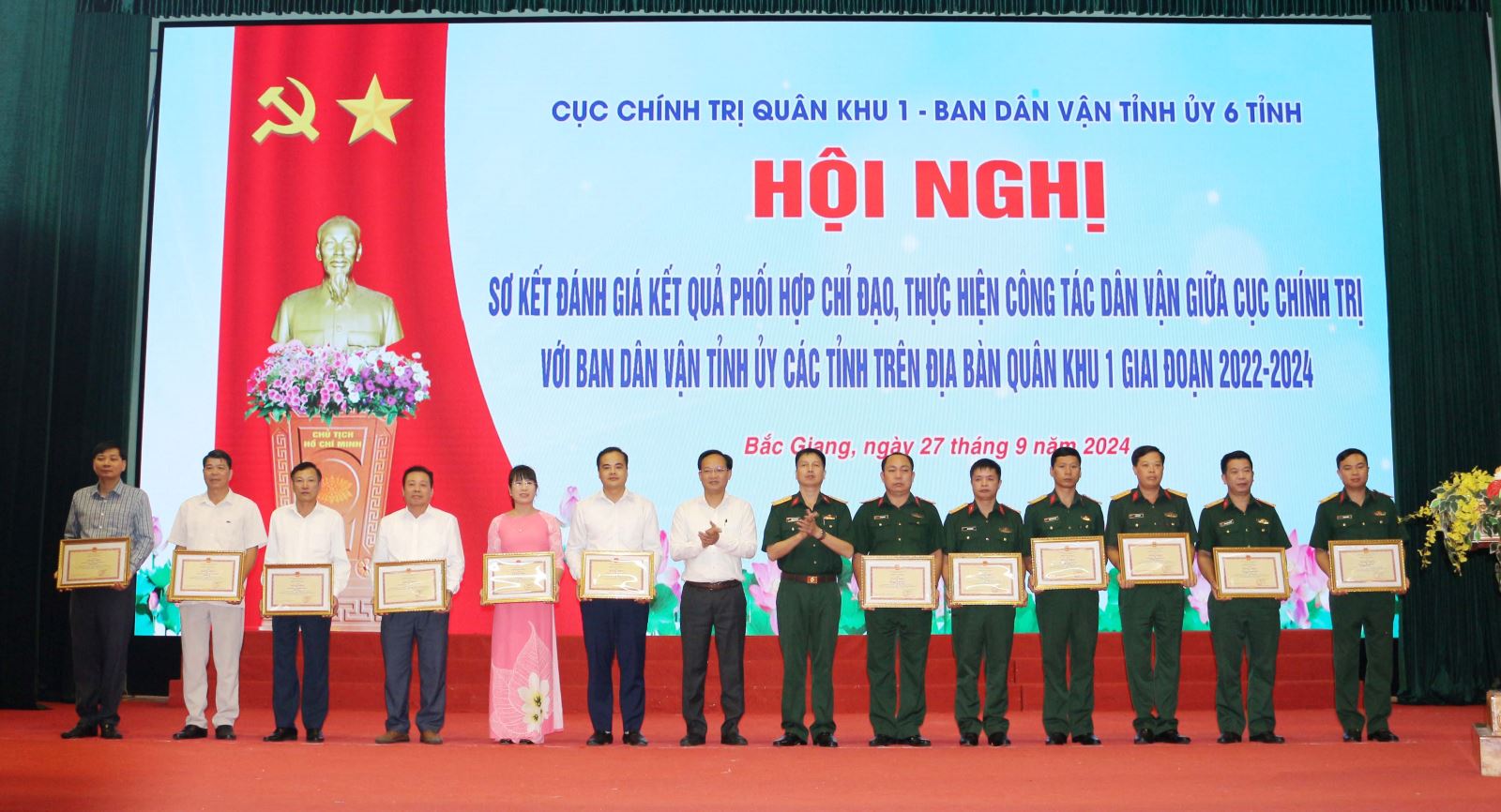 Tại hội nghị, Quân khu tặng Bằng khen cho 12 tập thể có thành tích xuất sắc trong thực hiện quy chế phối hợp giữa Cục Chính trị với Ban Dân vận Tỉnh ủy 6 tỉnh về công tác dân vận giai đoạn 2022-2024.