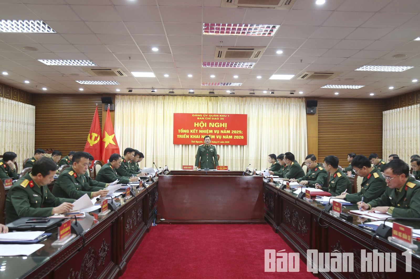 Sáng 9-1, Ban chỉ đạo 35 Đảng ủy Quân khu tổ chức hội nghị tổng kết công tác bảo vệ nền tảng tư tưởng của Đảng, đấu tranh phản bác các quan điểm sai trái, thù địch năm 2025 và triển khai nhiệm vụ năm 2026. Trung tướng La Công Phương, Bí thư Đảng ủy, Chính ủy Quân khu, Trưởng ban chỉ đạo 35 Đảng ủy Quân khu chủ trì hội nghị.