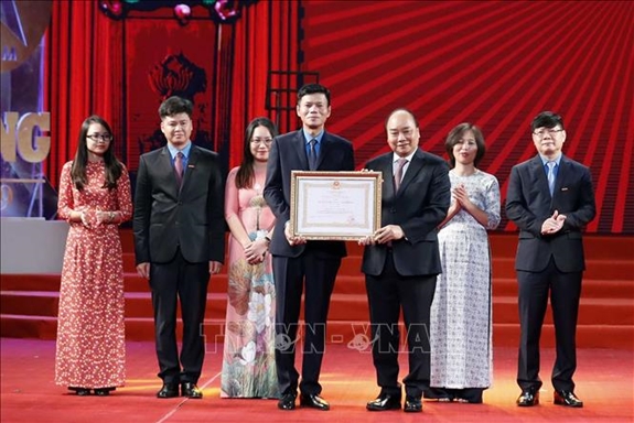 Thủ tướng Nguyễn Xuân Phúc trao Huân chương Lao động hạng Nhất tặng Báo Lao Động. Ảnh: TTXVN.