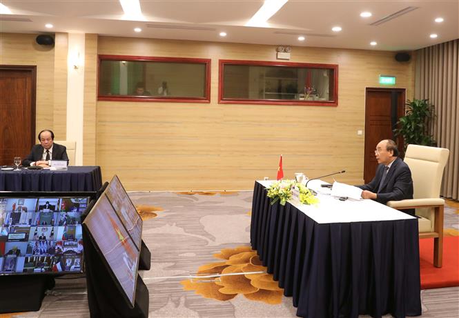 Thủ tướng Chính phủ Nguyễn Xuân Phúc cũng chia sẻ rằng những kết quả tích cực của Việt Nam trong công tác phòng, chống dịch có được là nhờ sự đồng lòng nhập cuộc của cả hệ thống chính trị và xã hội theo phương châm “chống dịch như chống giặc”; khẳng định Chính phủ Việt Nam nỗ lực tối đa vừa chống dịch vừa ổn định phát triển, đảm bảo an sinh xã hội để không một người dân nào bị bỏ lại phía sau. Thủ tướng cũng đề cập những nỗ lực của Việt Nam trên cương vị Chủ tịch ASEAN 2020 và Ủy viên Không thường trực Hội đồng Bảo an Liên hợp quốc trong việc tăng cường hợp tác khu vực và quốc tế để kiểm soát hiệu quả đại dịch, cũng như các đóng góp của Việt Nam về tài chính, vật tư, trang thiết bị y tế thiết yếu sản xuất tại Việt Nam đối với một số nước chịu ảnh hưởng của đại dịch.