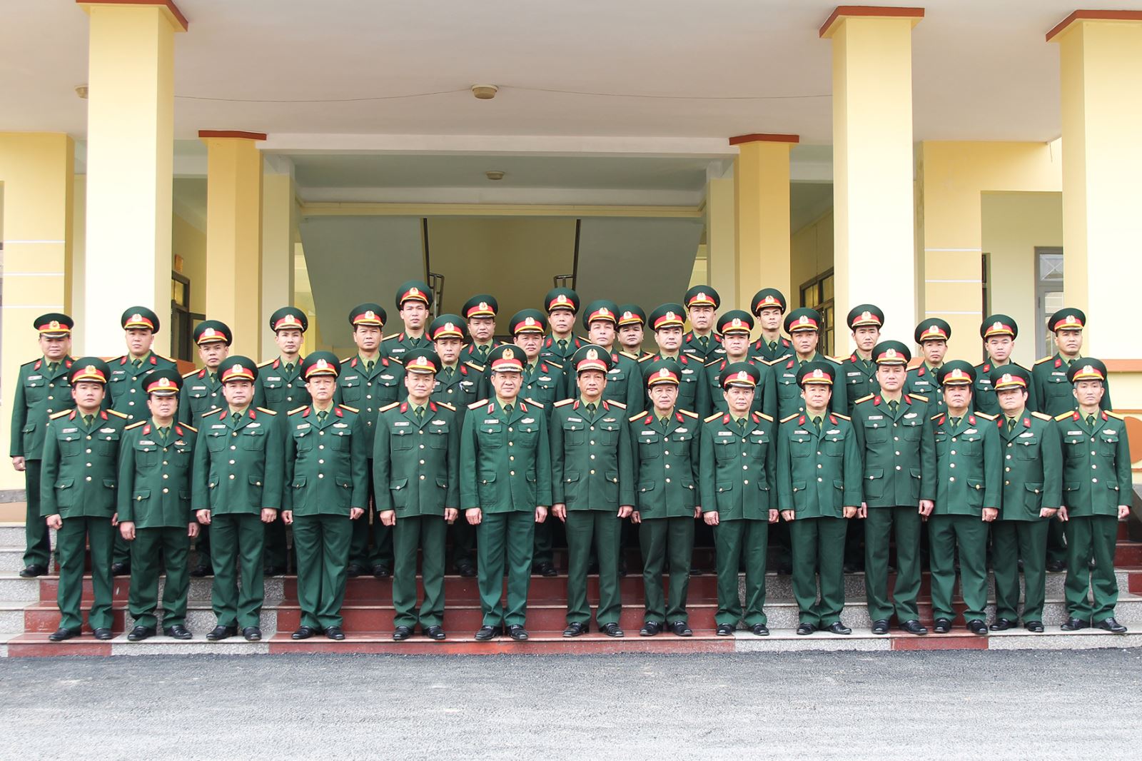 Thượng tướng Bế Xuân Trường cùng đoàn công tác chụp ảnh lưu niệm với cán bộ chỉ huy, cơ quan Bộ CHQS tỉnh Cao Bằng.