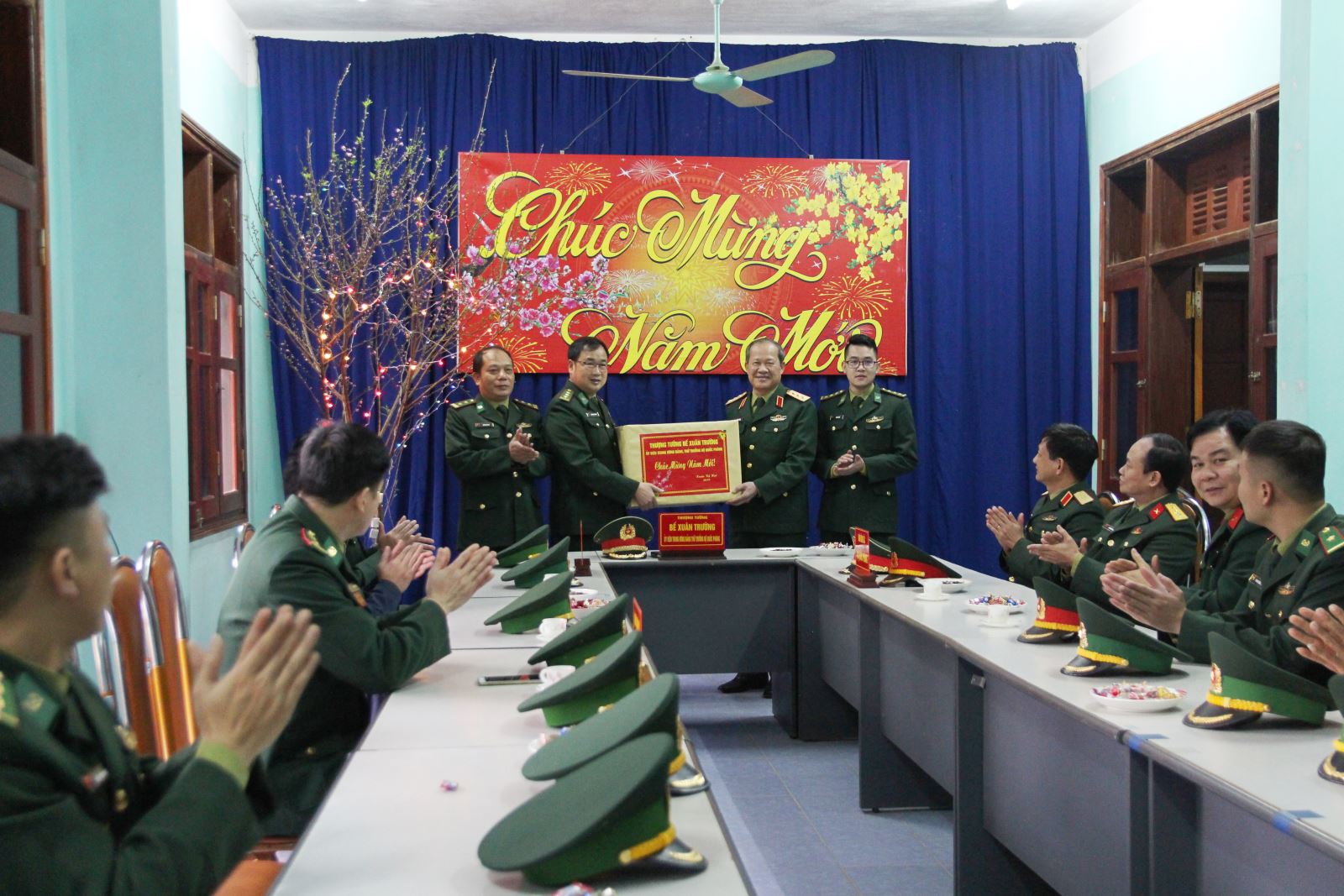 Đồng chí Thứ trưởng Bộ Quốc phòng tặng quà cán bộ, chiến sĩ Đồn Biên phòng Cần Yên (Thông Nông, Cao Bằng).